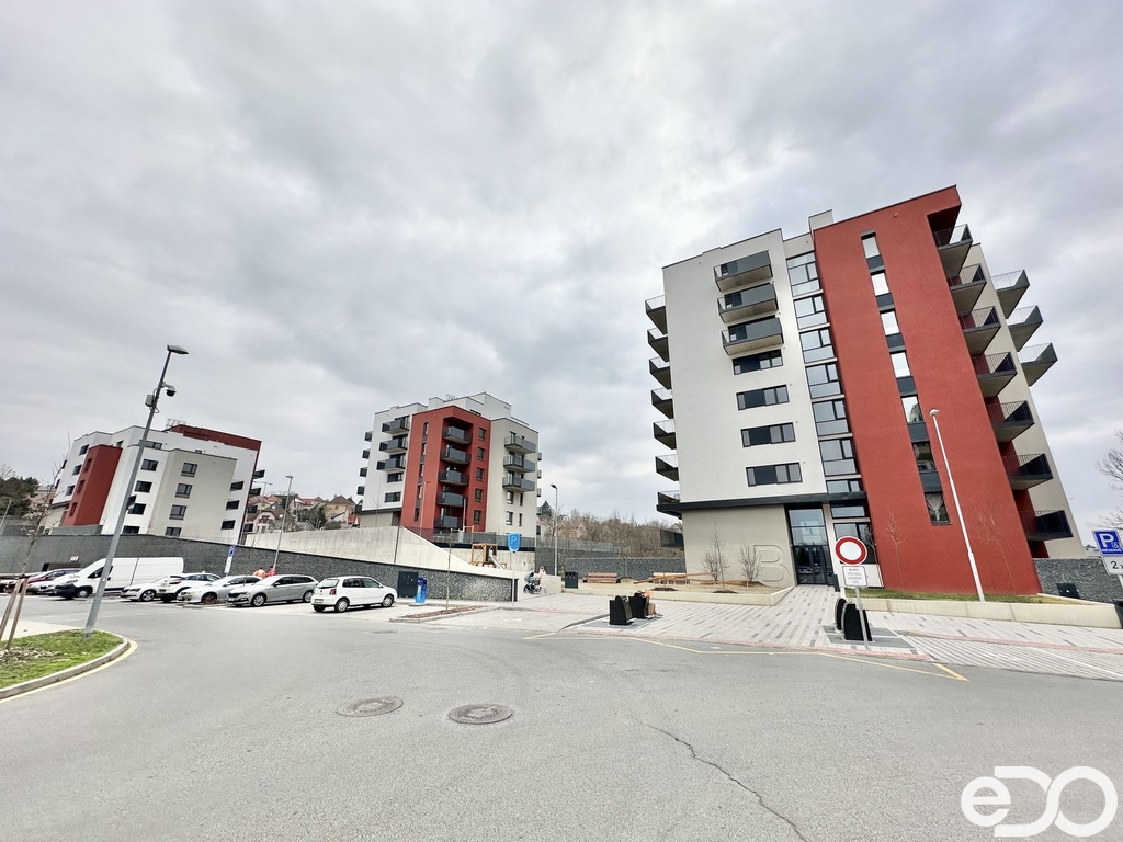 Bytová jednotka o celkové užitné ploše 53 m² se nachází v 5. podlaží skeletové řadové novostavby a byla obydlená pouze přibližně rok a půl. Užitná plocha bytu, tedy plocha obytných místností uvnitř vnějších stěn nemovitosti, je 36,7 m². Skládá se z předsíně s novou vestavěnou skříní na míru, obývacího pokoje s novou kuchyní na míru (německé high-quality značky Nobilia), koupelny s vanou, WC a umyvadlem, a velkého krytého balkonu (11,4 m²), který je přístupný z obývacího pokoje. Obývací pokoj je situován na východ. Co se týče spotřebičů, tak kuchyně disponuje indukční varnou deskou s digestoří, vestavěnou myčkou, mikrovlnnou troubou, elektrickou troubou a lednicí s mrazákem. Vše značky Siemens. K bytové jednotce dále náleží velký zděný sklep (4,9 m²) a garážové parkovací stání. Další garážová stání lze dopronajmout. Je zde také možnost využívat kočárkárnu, kolárnu či speciální místnost na mytí kol.