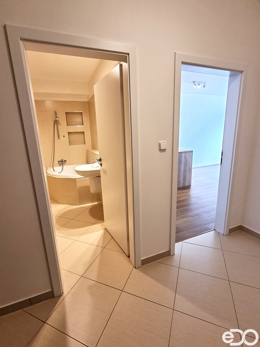 V zastoupení majitele bych Vám rád nabídl k pronájmu moderní bytovou jednotku o dispozici 2+kk a celkové ploše 59 m2 v novostavbě z roku 2019, která se nachází ve 2. nadzemním podlaží v atraktivní lokalitě, Praha - Štěrboholy, ulice Kryšpínova. Obytná plocha bytu je 54 m2 a má samostatnou, prostornou ložnici a obývací pokoj s kuchyňským koutem (kuchyňská linka Oresi na míru, varná deska, elektrická trouba, digestoř) Koupelna je velmi nadstandardní, prostorná, s rohovou vanou, závěsným WC a žebříkovým radiátorem. V bytě se nachází i komora vybavená regály a dalšími možnostmi pro úložné prostory. V celém bytě LED osvětlení, přípojky na internet, kabelovou TV, telefon. Podlahy: dlažba (chodba, komora, koupelna) a vinyl (pokoje a kuchyň), vytápění dálkové, okna jsou na jihovýchodní světovou stranu. Příslušenstvím je balkon o výměře 5 m2, na který je vstup z obývacího pokoje.