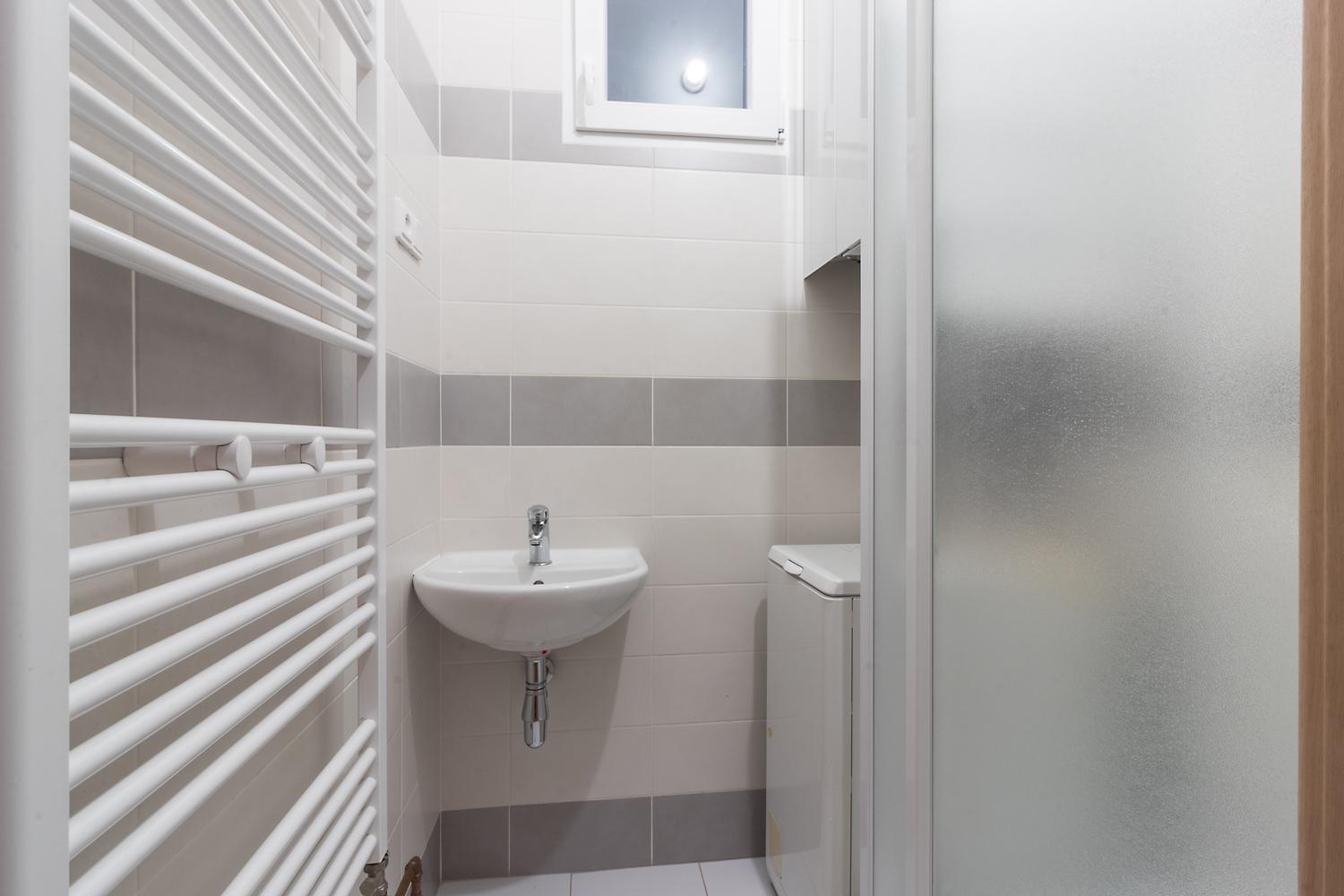 V bytě najdeme dva velké pokoje, plně vybavenou kuchyň, koupelnu se sprchovým koutem včetně pračky, samostatnou toaletu a dvě komory.