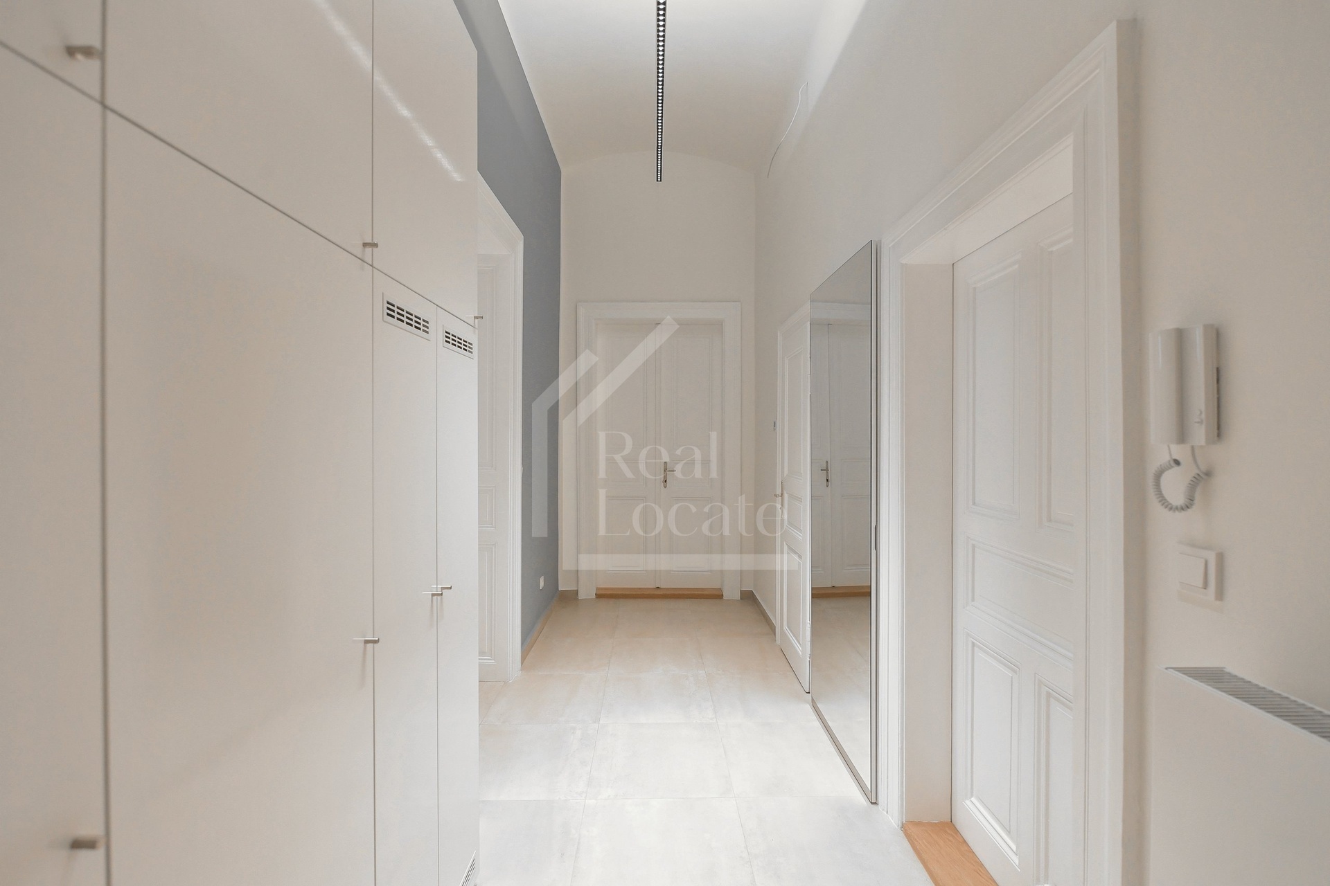 Nabízíme k pronájmu kompletně zrekonstruovaný byt na nábřeží Vltavy, který vás okouzlí panoramatickým výhledem na řeku a hlavní pražské památky, včetně Tančícího domu a kláštera Emauzy. Tento prostorný byt se nachází v prvním patře pečlivě udržovaného domu s původní architekturou a zachovanými historickými prvky. Dům nemá výtah a nabízí společnou zahradu ve vnitrobloku, což přispívá k jeho klidné atmosféře.