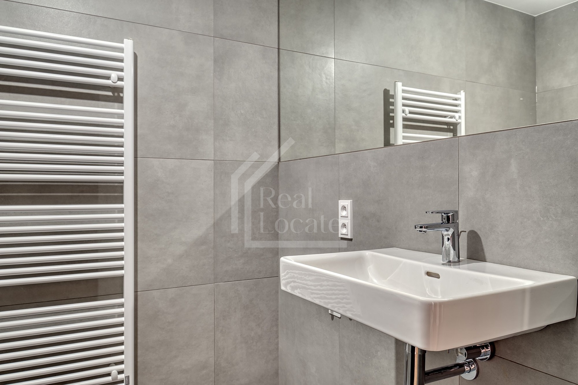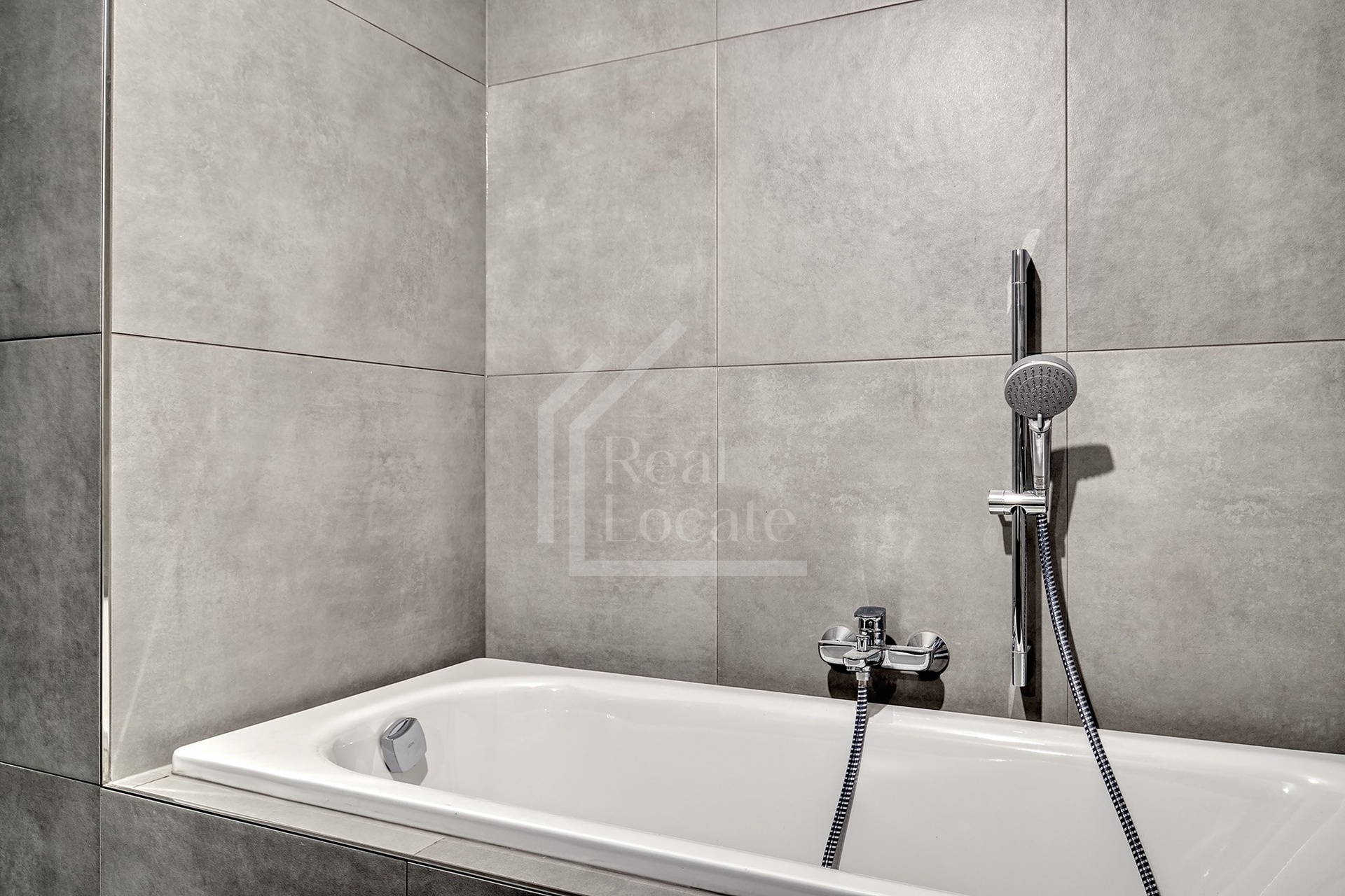 Byt se nachází ve čtvrtém podlaží s výtahem. Celému bytu dominuje prostorná místnost s velikými okny a rohovou kuchyní. Byt je orientován do a slepé ulice, díky tomu je zde naprostý klid i přes lokaci v centru Prahy. Veliká trojitá okna a vysoké stropy zajišťují světlost a prostornost bytu. Ve vybavení bytu jsou zcela nová designová kuchyně a koupelna s vanou a oddělený záchod, jinak je byt nezařízený. Kuchyň je plně vybavena troubou, mikrovlnou troubou, sporákem, myčkou a lednici s mrazákem. U hlavní ložnice je samostatná šatna. Byt má nový, samostatný, plynový kotel pro ohřev vody i topení, nájemce si tak snadno může regulovat svoji spotřebu.