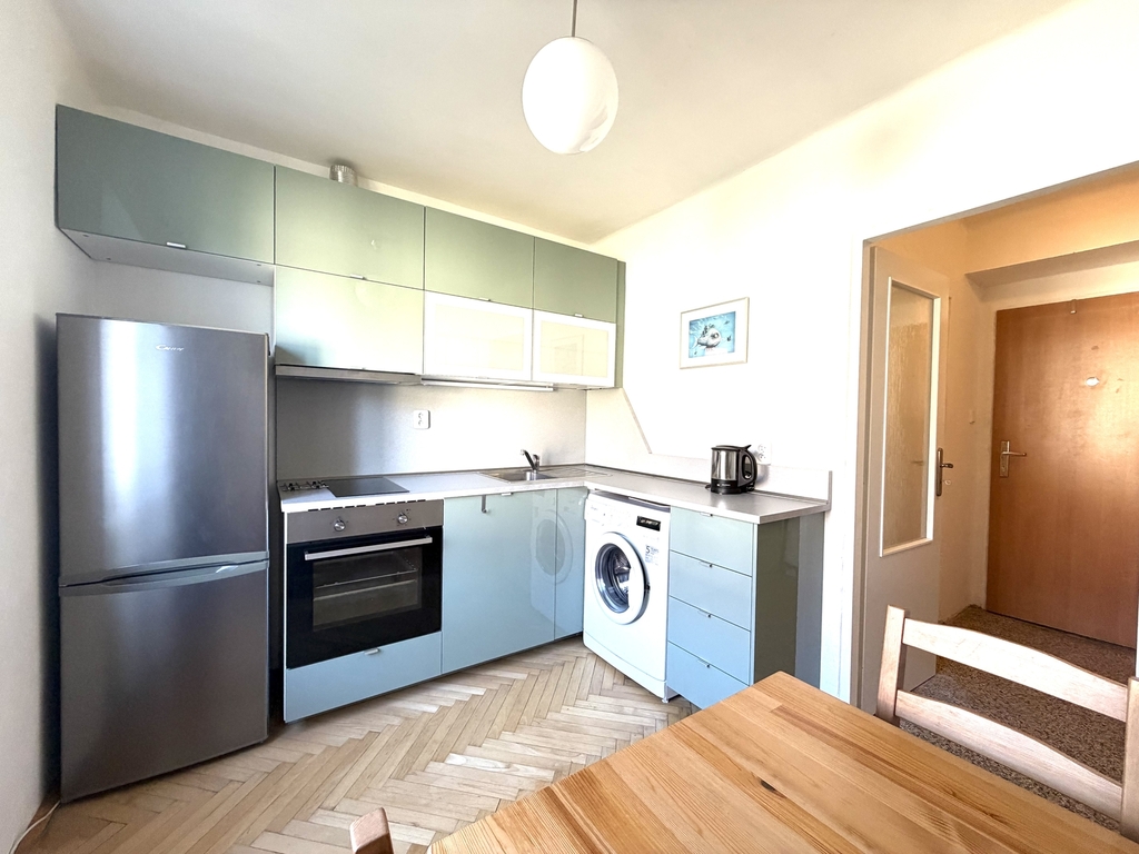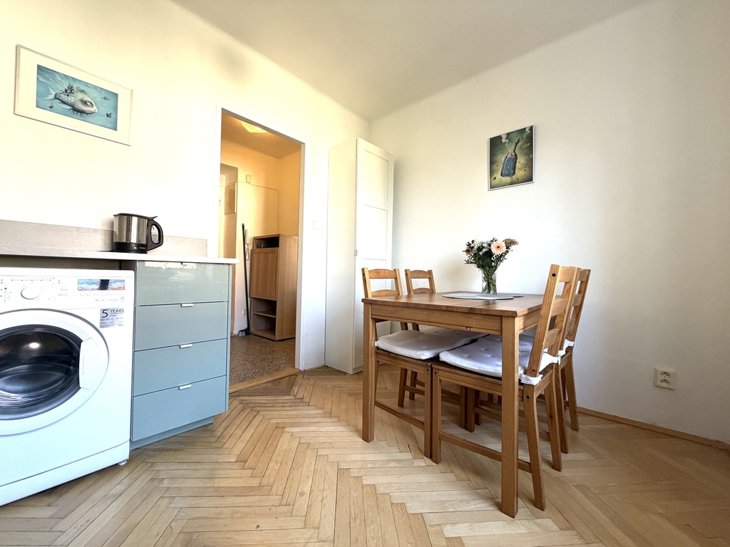 V zastoupení majitelky uvádíme do nabídky k pronájmu krásný, světlý byt o dispozici 1+1 (31 m2) situovaný ve 3. patře cihlového domu v ulici Křivoklátská, Praha - Letňany. Dispoziční řešení: kuchyně s místem pro jídelní stůl i kuchyňkou linku, pokoj, který je jak obývací místností tak prostorem na spaní, koupelna se sprchovým koutem i toaletou a předsíň. Byt je vybavený kuchyňskou linkou, varnou dvoujplotýnkou, elektrickou troubou, pračkou, lednicí s mrazákem, digestoří, jídelním stolem s židlemi, rozkládacím sofa / rozklad na 1 a 1/2 lůžka/, konferenčním stolkem a skříněmi jak v pokoji, tak v kuchyni. V obou obytných místnostech jsou parkety, v předsíni potom snadno udržovatelné teraso. Vytápění i ohřev teplé vody je centrální. Nemovitost se nachází v klidné lokalitě s dostatkem vzrostlé zeleně. Přímo před domem jsou krásné stromy i travnaté plochy. V docházkové vzdálenosti je plná občanská vybavenost: obchodní centrum, plavecký stadion, sportoviště apod. Parkovat je možné přímo před domem a nebo na parkovišti vzdáleném 50m. V bytě není možné chovat domácí mazlíčky. Platební podmínky: měsíční nájemné činí 15 500- Kč + zálohy na všechny poplatky ve výši 3 500,- Kč. Vratná kauce ve výši 19 000,- Kč. Při podpisu nájemní smlouvy je splatná provize RK ve výši 15 500,- Kč plus DPH. Byt je k dispozici ihned.