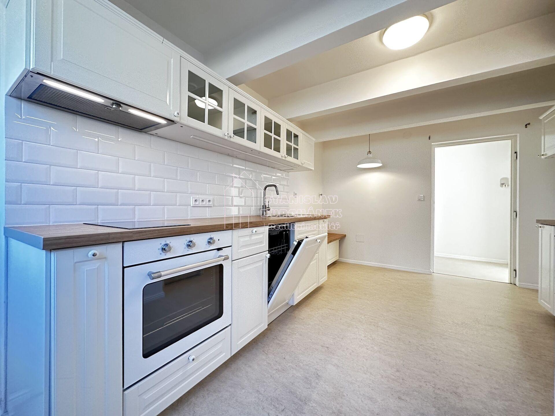 Byt je nevybavený nábytkem. V kuchyni je zánovní kuchyňská linka včetně vestavěné lednice s mrazákem, myčky, elektrické trouby, varné 2plotýnky a digestoře. Koupelna je se sprchovým koutem, je tu i místo na pračku. Ohřev vody je elektrickým bojlerem.