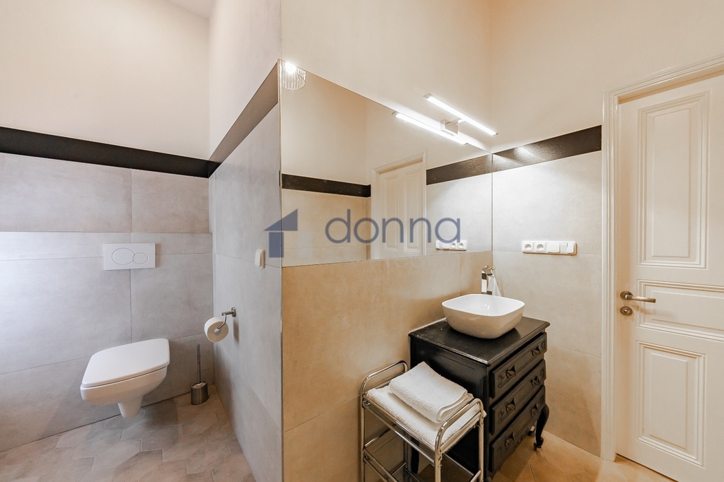 Nabízíme k pronájmu zrekonstruovaný a kompletně zařízený studiový byt 1+1, o ploše 46m2, ve zvýšeném přízemí v historickém rezidenčním domě ve stylu Art Deco s výtahem a recepcí, ulice Hálkova, Praha 2 - Nové Město.