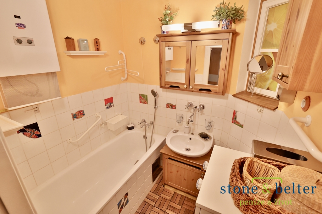 - Vkusně zařízená koupelna a oddělená toaleta.