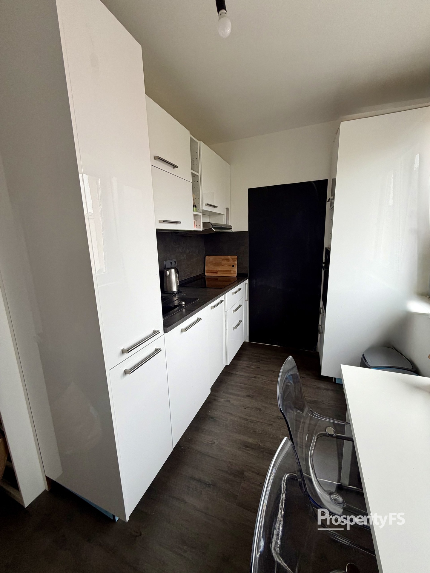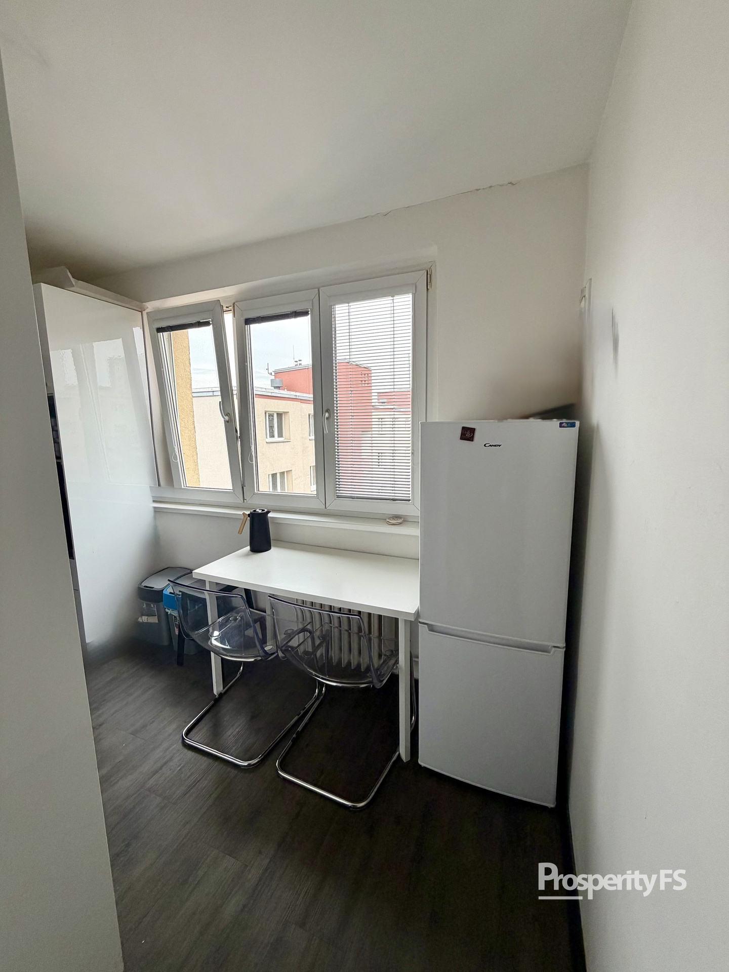 Kuchyň je plně vybavena nejen elektrickými spotřebiči, ale i kompletním nádobím, které zůstává k dispozici novému nájemníkovi. Byt je tak připraven k okamžitému nastěhování bez nutnosti dalších investic.