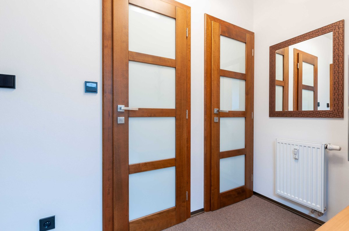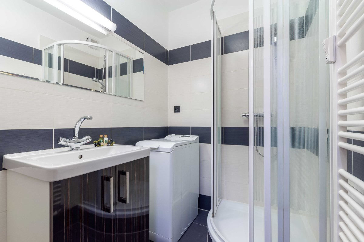 Byt je vybaven přímo k nastěhování. Nová kuchyňská linka disponuje lednicí, myčkou, sklokeramickou deskou a elektrickou troubou. Obývací pokoj je útulně zařízen postelí, jídelním stolem s židlemi, nočním stolkem a šatní skříní. Součástí moderní koupelny je prostorný sprchový kout, umyvadlo se zrcadlem a pračkou. Toaleta je oddělená. Pokoje jsou průchozí.