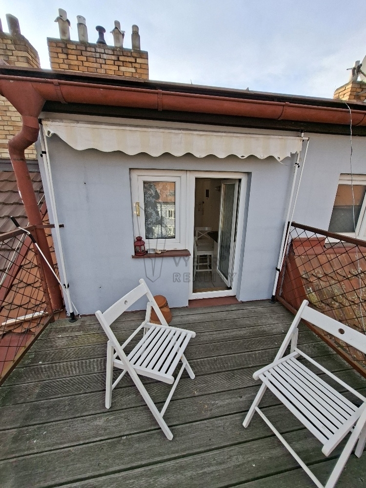 Nabízíme k pronájmu jedinečný podkrovní byt o dispozici 1+1 a celkové ploše 41 m² s příjemnou střešní terasou (6 m²), situovaný v klidné ulici Na Mlejnku, Praha 4 – Braník. Byt se nachází ve 4. patře domu bez výtahu a zaujme svou atypickou atmosférou i dostatkem přirozeného světla díky střešním oknům v hlavním pokoji. Interiér působí vzdušně a útulně zároveň. Koupelna je vybavena rohovou masážní vanou, umyvadlem a pračkou. Kuchyň disponuje kuchyňskou linkou se spotřebiči a nabízí přímý vstup na střešní terasu – ideální místo pro ranní kávu, relaxaci nebo večerní posezení či grilování s přáteli. Vytápění a ohřev vody zajišťuje vlastní plynový kotel. K bytu náleží také sklepní kóje. Parkování je možné v jednosměrné ulici před domem. Byt je vybaven pračkou a nábytkem viz fotografie.