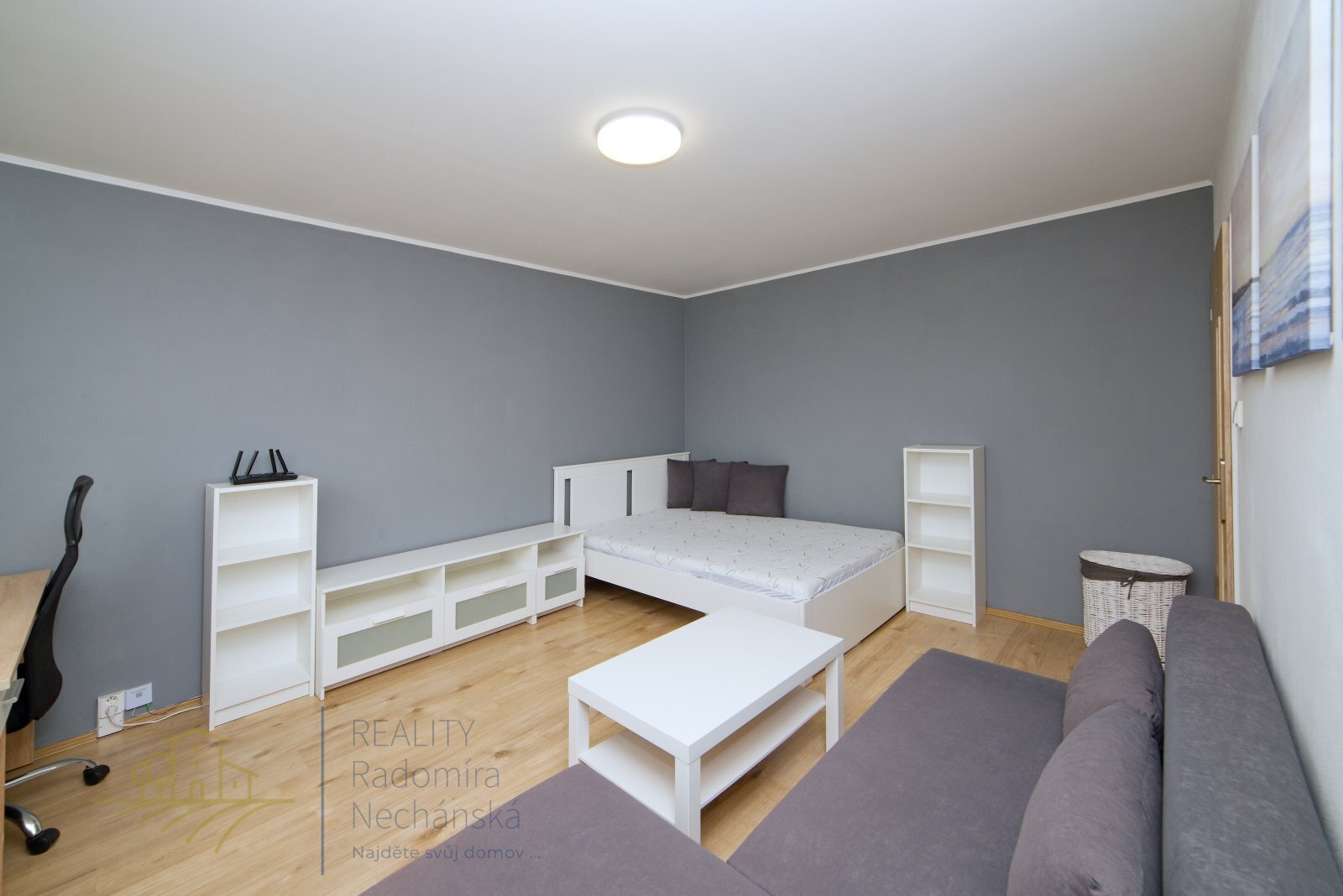 Je částečně zařízený, což umožňuje novému nájemníkovi se ihned nastěhovat a doladit si bydlení dle vlastních představ.
