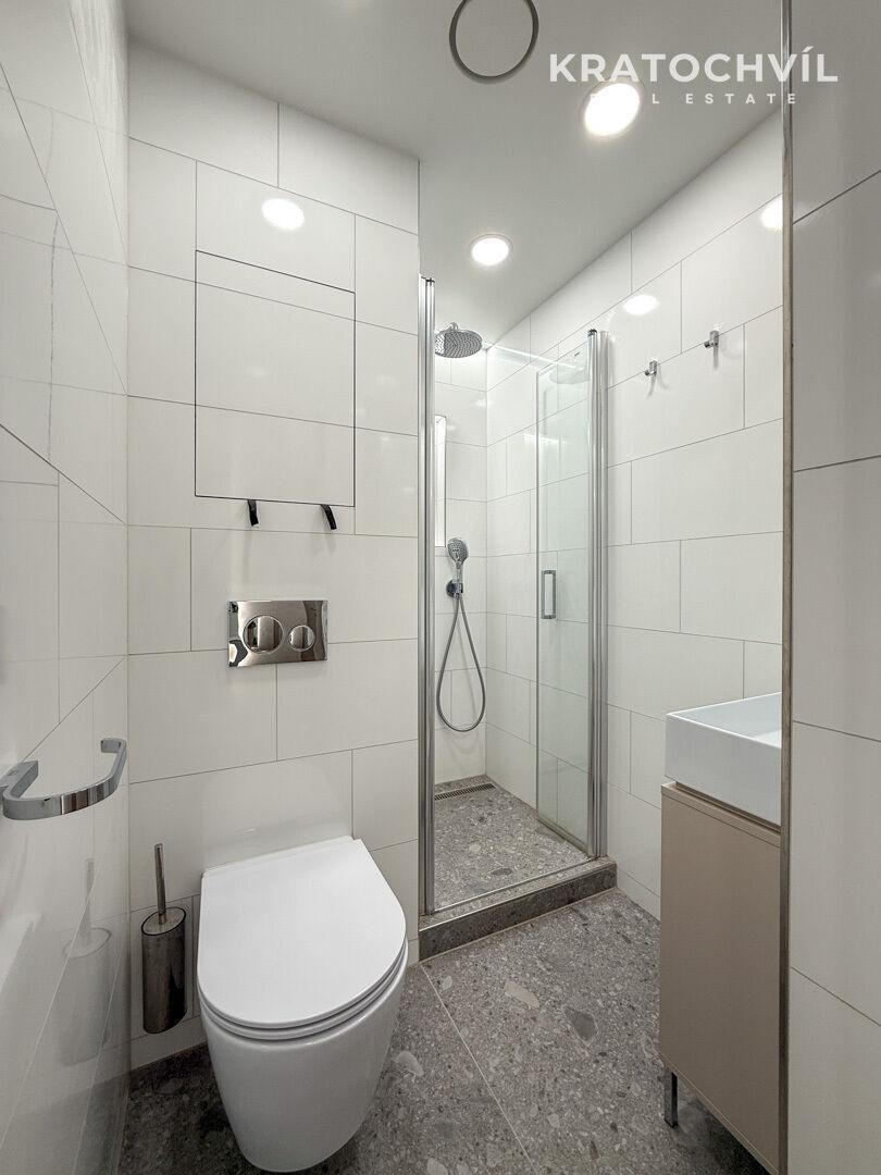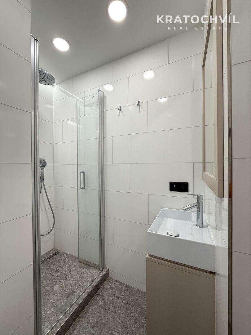- Koupelna se sprchovým koutem, toaletou a umyvadlem
