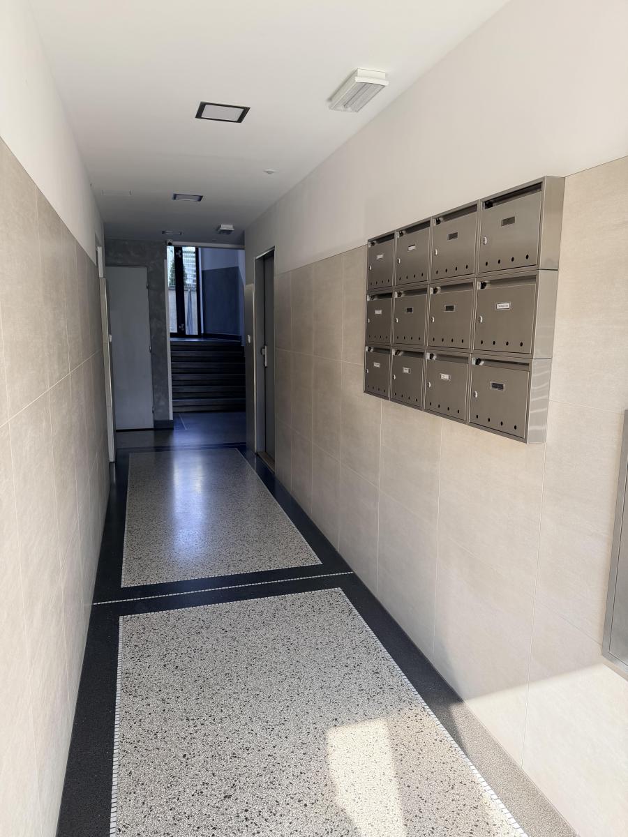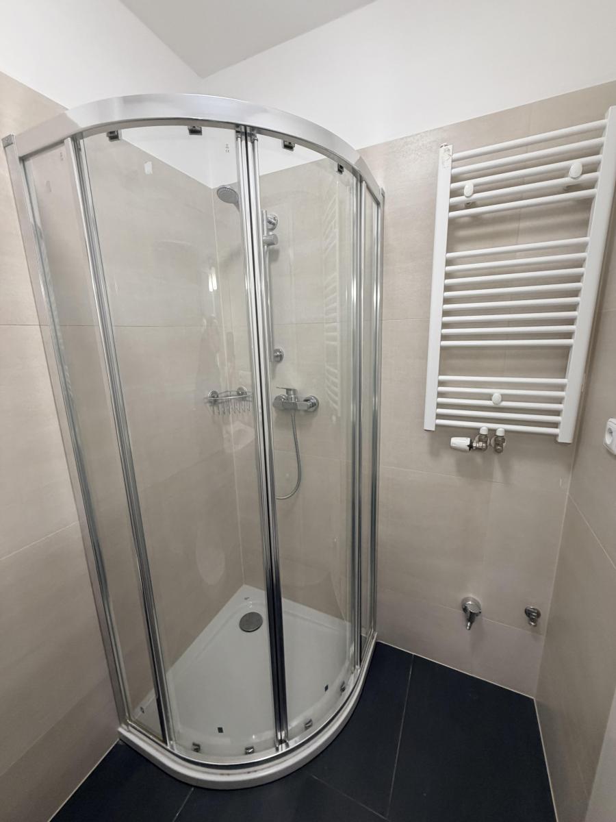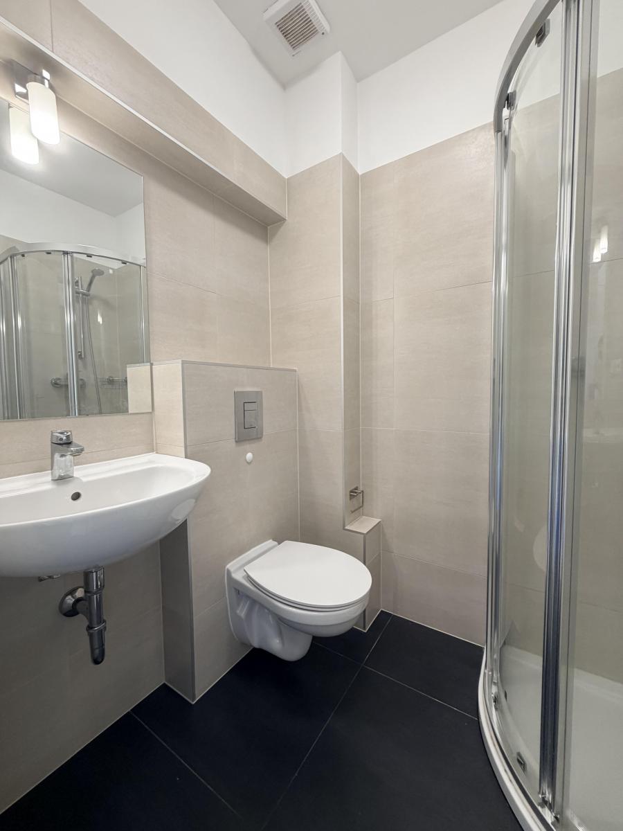 Nabízíme vám nádherný moderní byt o dispozici 1+kk (28 m2) k pronájmu, nachází se ve 2. NP budovy. Dispozice bytu zahrnuje chodbu s vestavěnou skříní, otevřený koncept obývacího pokoje s kuchyní, koupelnu se sprchovým koutem a WC. K bytu náleží sklep 6m.