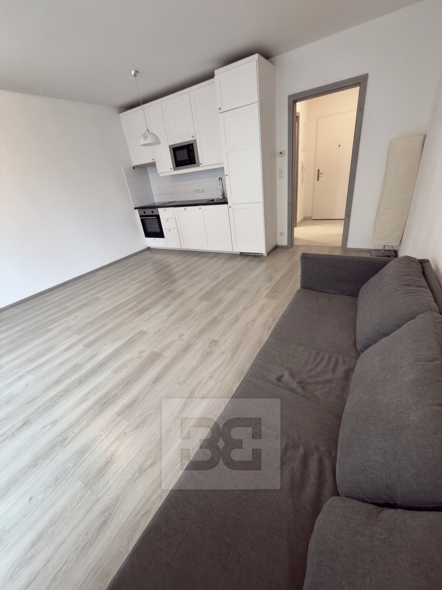 Nabízíme Vám k pronájmu byt 1+kk s obytnou plochou 33 m² situovaný ve 2.NP domu s výtahem. Byt se sestává ze vstupní chodby s vestavnou skříní, koupelny se sprchovým koutem, toaletou a pračkou a obývacího pokoje s kuchyňským koutem plně vybaveným vestavnými spotřebiči včetně myčky nádobí. Z pokoje lze vejít na balkón orientovaný do klidného vnitrobloku. K bytu náleží sklep.