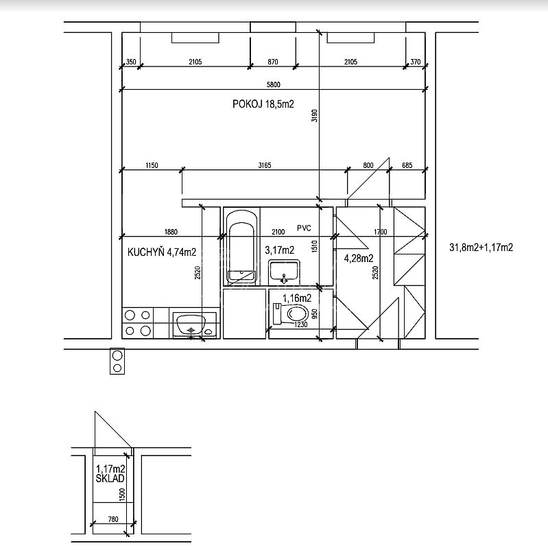 | Dispozice/podlahová plocha: | 1+kk/33 m² |