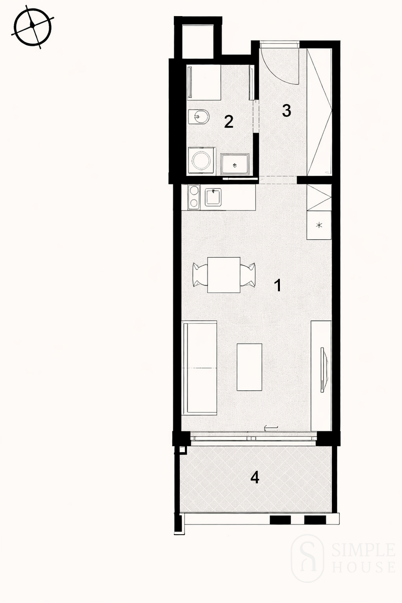 Nabízíme k dlouhodobému pronájmu nový, slunný byt 1+kk o celkové ploše 34 m² se zasklenou lodžií 6 m² a sklepem 4 m², který se nachází v 8. nadzemním podlaží moderní novostavby v ulici Kurta Konráda, Praha 9 – Libeň, v projektu Harfa Design Residence.