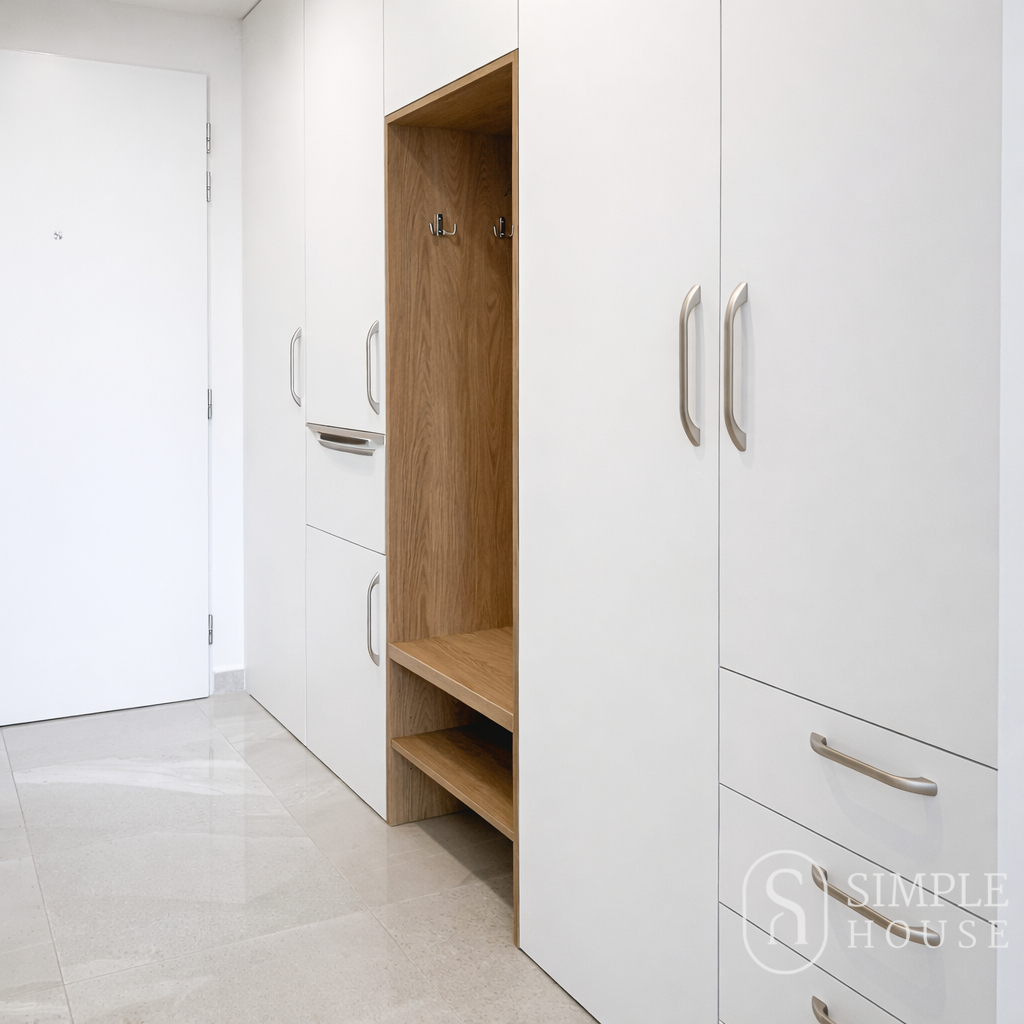 Byt nabízí kvalitní a nadstandardní provedení. Dispozice zahrnuje vstupní chodbu s prostornou vestavěnou skříní, moderní koupelnu se sprchovým koutem, sanitou, koupelnovou skříňkou s LED osvětlením a pračkou s integrovanou sušičkou. Hlavní obytná místnost je vybavena kuchyňskou linkou na míru s vestavěnými spotřebiči – indukční varnou deskou, elektrickou troubou, mikrovlnnou troubou, myčkou nádobí, kombinovanou lednicí s mrazákem a digestoří. V místnosti je vinylová podlaha a vstup na lodžii přes velkoformátová posuvná okna s trojskly.