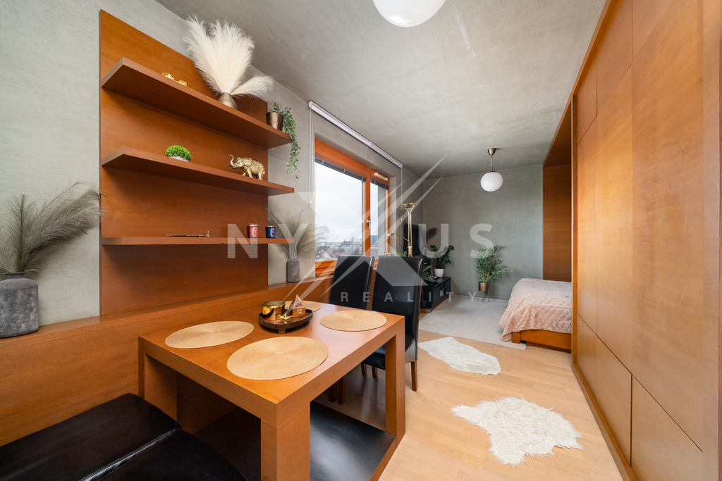 Nadstandardní provedení, prémiové materiály, a maximální praktičnost. Byt má dostatek úložných prostor díky vestavnému nábytku.