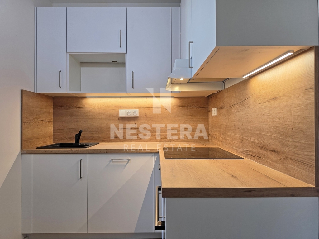 Byt je dispozičně složen z předsíně se vstupy do koupelny s kuchyňským koutem a přípravou na pračku a dále do obývacího prostoru s kuchyňským koutem.