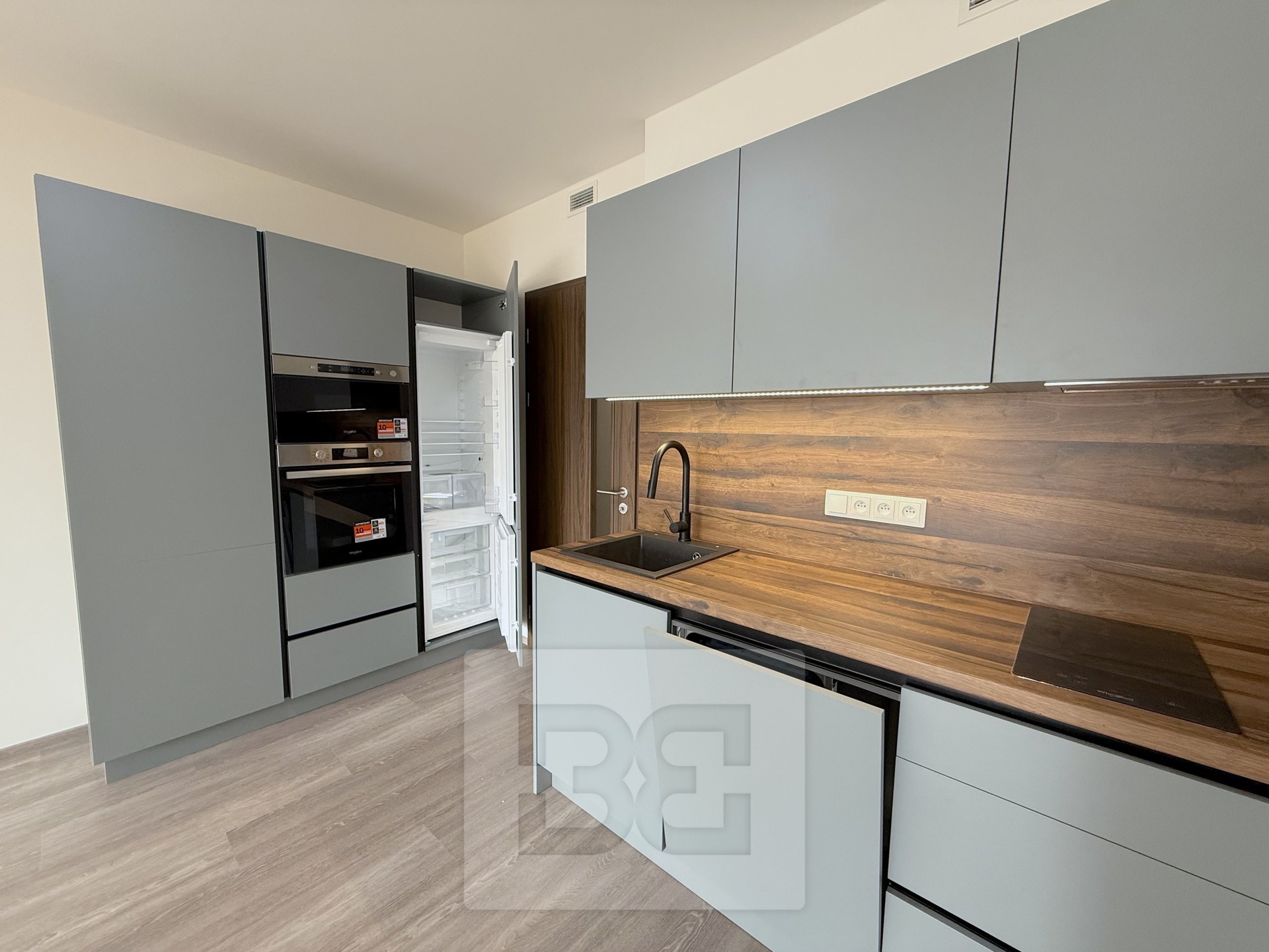 • Kuchyňský kout je vybaven vestavěnými spotřebiči ( myčkou, lednicí, elektrickou troubou. digestoř, indukční varnou deskouí)