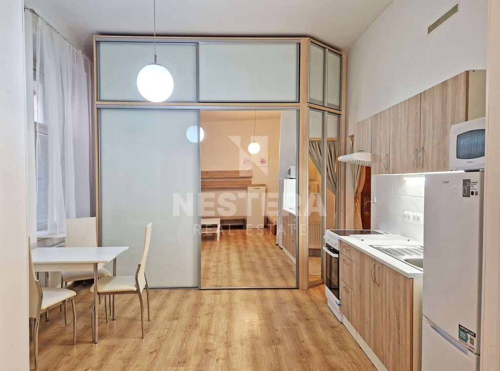 Pronájem pěkného, zrekonstruovaného a vybaveného bytu 1+kk | 37m2, který se nachází v přízemí secesního domu (okna do ulice) na perfektní adrese.