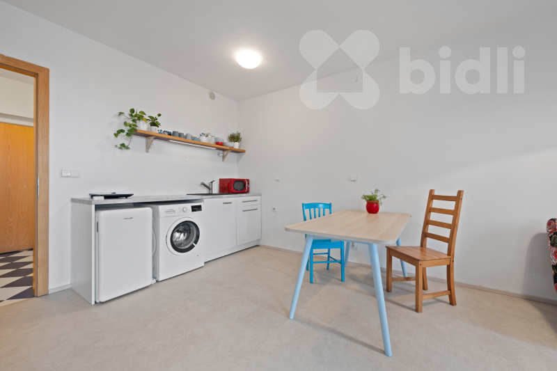 Vybavení: postel, jídelní stůl, 3ks židle, sedací souprava, lampa, skříňka, prostorná šatna, dvojvařič, pračka.