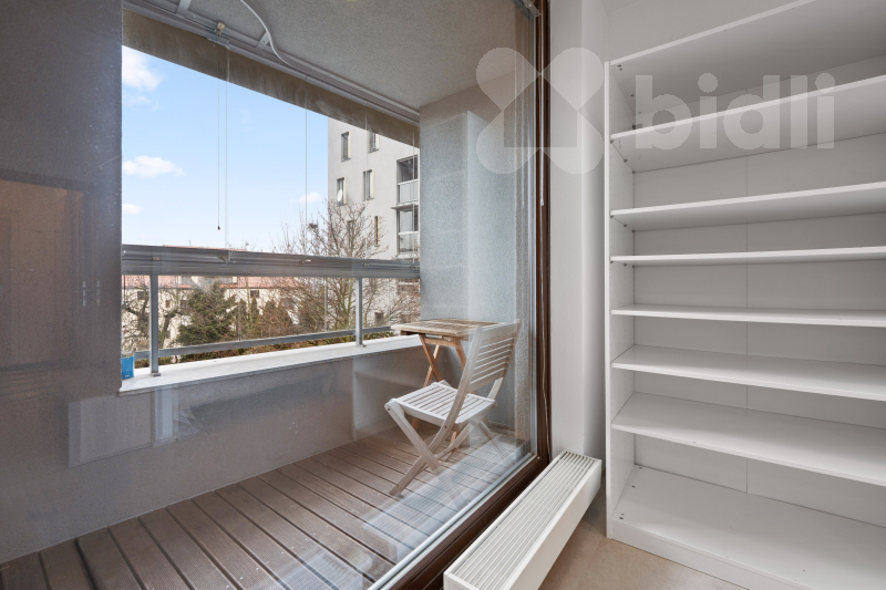 Prostorné 1+kk v moderním bytovém domě, který se nachází na pomezí oblíbených čtvrtí Pankrác a Podolí. Byt o celkové ploše 37,7 m² je situován ve druhém nadzemním podlaží a jeho velkou předností je prostorný balkon, který nabízí příjemný a ničím nerušený výhled do vzrostlé zeleně.