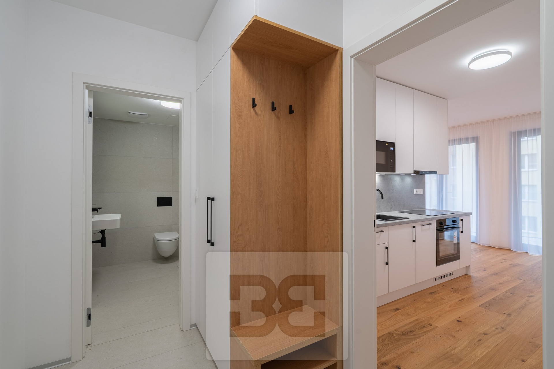 Nabízíme k pronájmu moderní byt o dispozici 1+kk, který je díky chytrému dispozičnímu řešení možné vnímat jako tzv. 1,5kk. Obytný prostor je prakticky oddělen příčkou, což zajišťuje vyšší míru soukromí a komfortu.