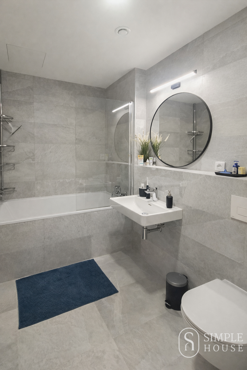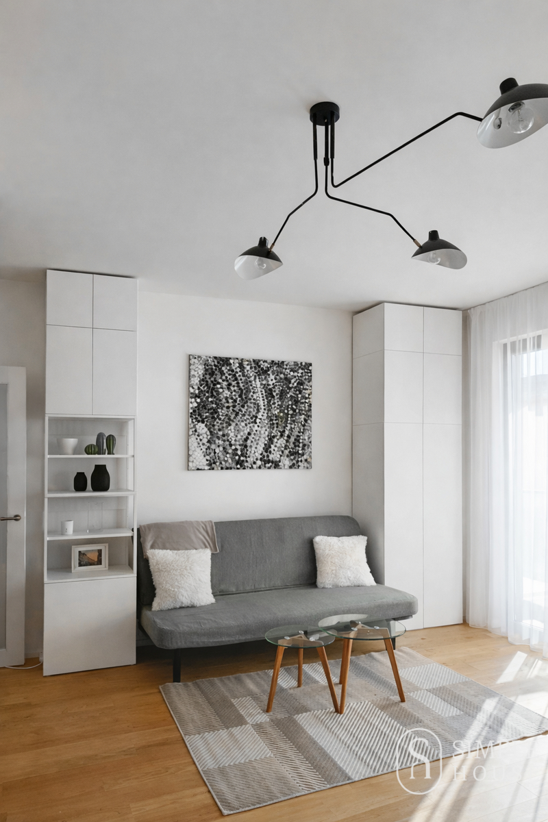 Dispozice bytu 1+kk nabízí prostorný obytný prostor s kuchyňským koutem, který je plně vybaven nábytkem a všemi potřebnými spotřebiči, včetně pračky se sušičkou. Byt je orientován na západ a disponuje francouzskými okny s elektrickými venkovními žaluziemi. O vysoký komfort bydlení se stará podlahové vytápění a rekuperace.