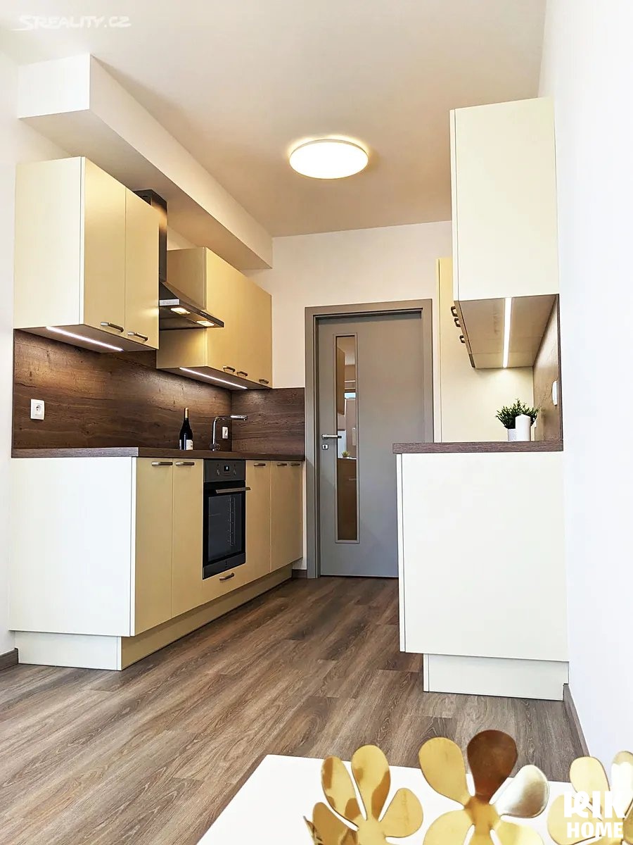 Kuchyňský kout je vybaven kuchyňskou linkou se spotřebiči, které umožňují komfortní každodenní fungování. V bytě nechybí ani úložné prostory, které přispívají k jeho praktičnosti.