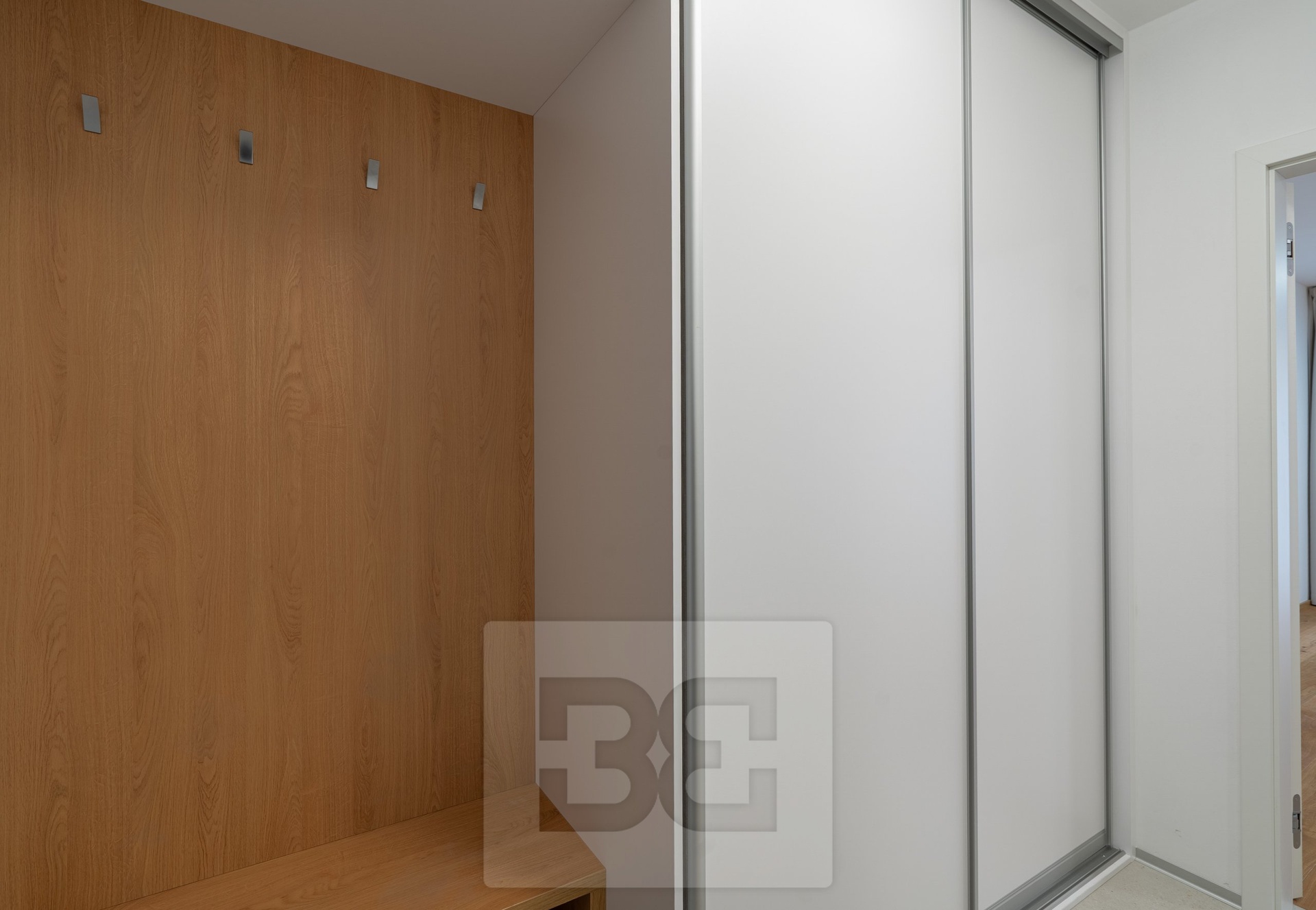 V předsíni je vestavěná prostorná skříň poskytující dostatek úložného prostoru.