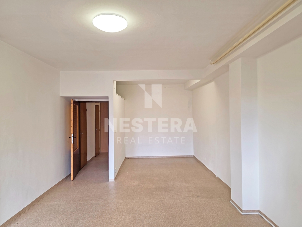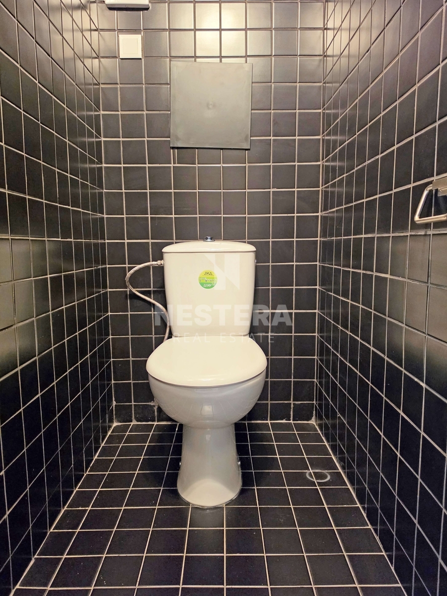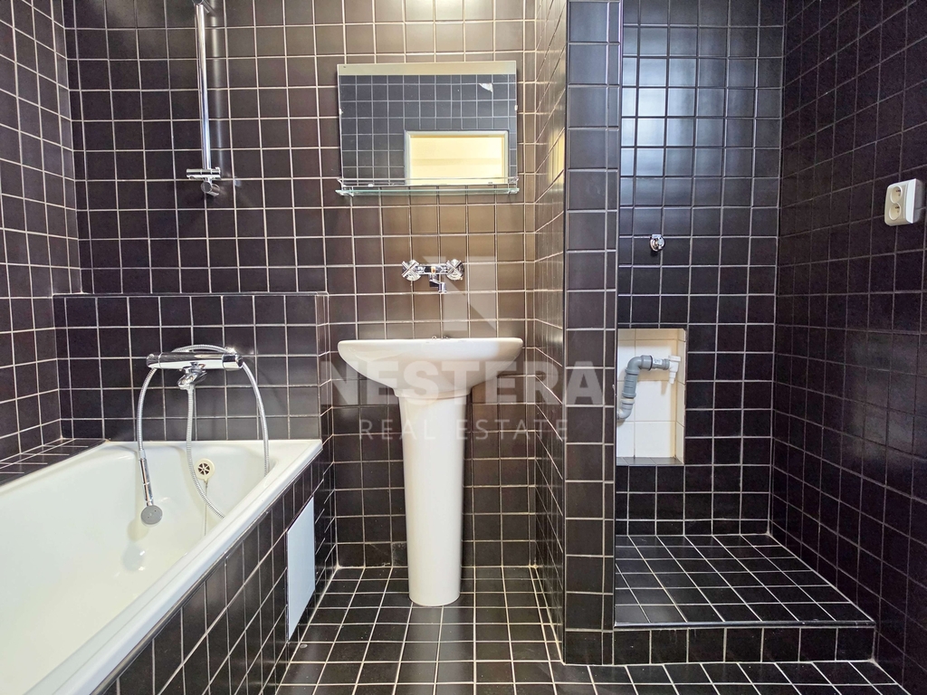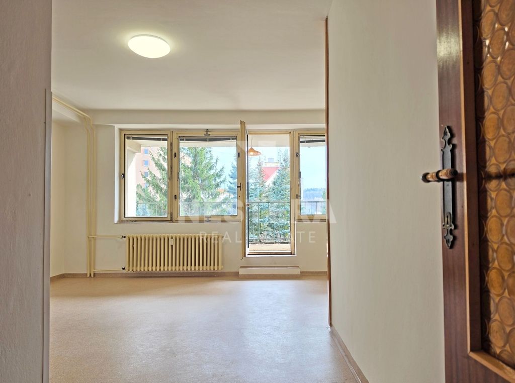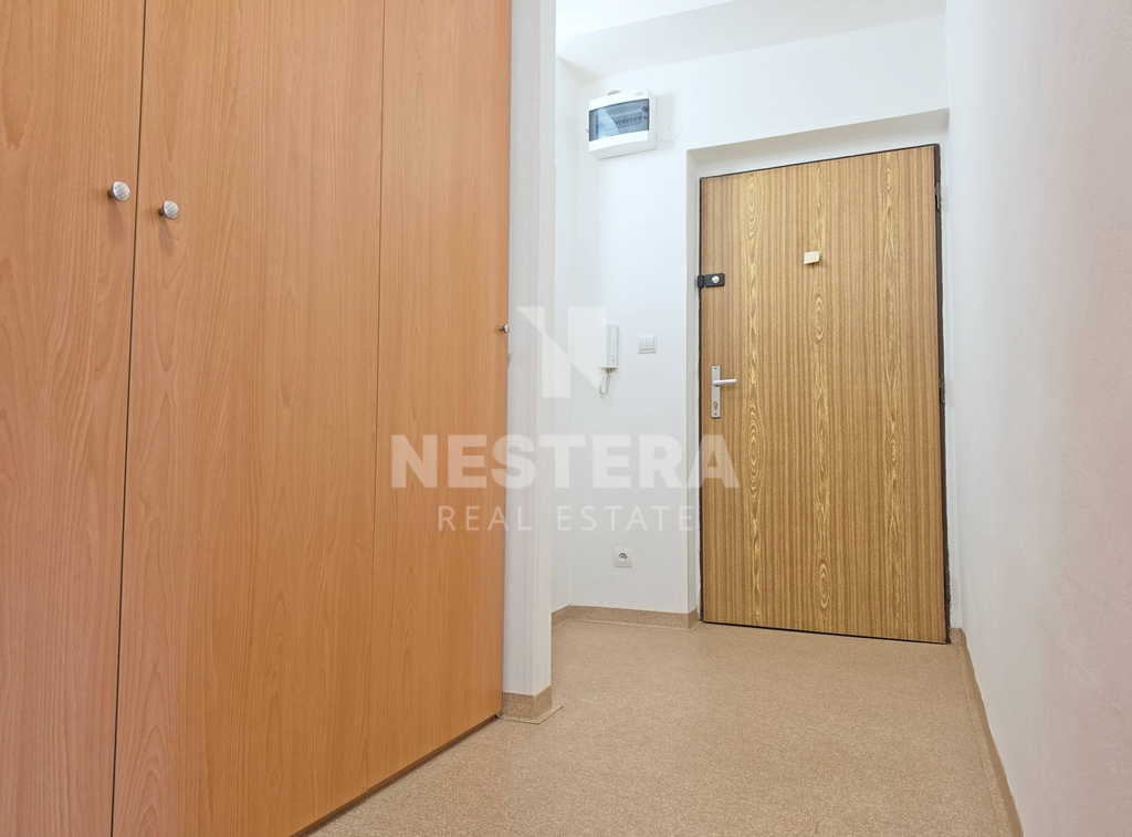 Dispozičně je byt rozdělen na chodbu s vestavnou skříní, koupelnu s vanou a přípravou na pračku, samostatnou toaletu a velmi prostorný obývací prostor s kuchyňským koutem.