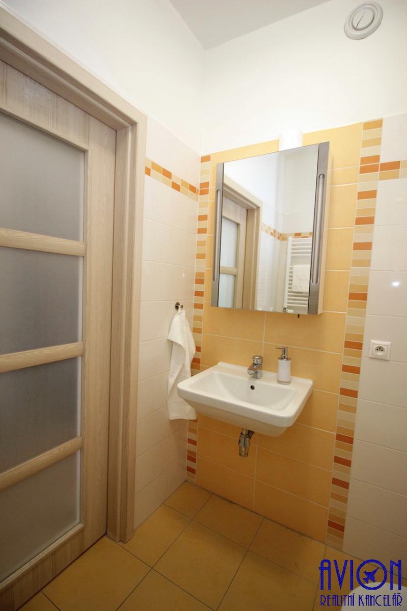 Pronájem částečně zařízeného bytu 1+kk, 34 m2 s balkonem 4,5 m2, v novostavbě Rezidence Eliška, s krásným výhledem, Praha 9, Freyova ulice, blízko metra Vysočanská.