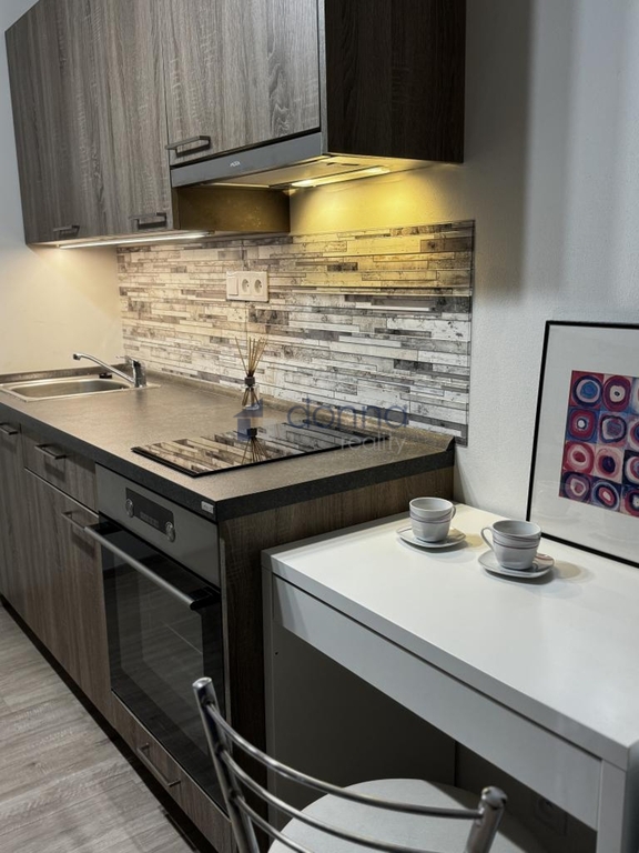 Chodba s šatními skříněmi, prostorný pokoj s balkonem, kuchyňským koutem, lůžkem, komodou a skříňkou s TV. Koupelna se sprchovým koutem, dále pračka se sušičkou a toaleta. Kuchyňská linka se spotřebiči (varná dvouplotýnka, pečící trouba, lednice, mikrovln. trouba), menší jídelní stolek. Bezpečnostní vchodové dveře, na oknech jsou nainstalovány el. předokenní rolety. V bytě je rekuperace.