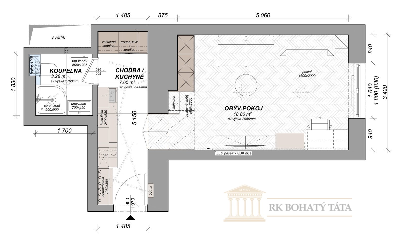 Dispozice bytu:1+kk