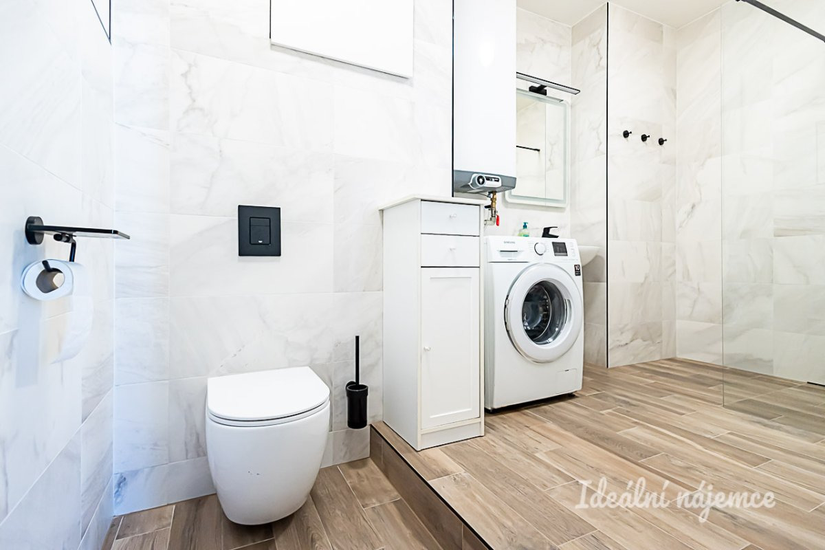 Byt je nabízen částečně vybavený, což dává možnost doladit si interiér podle vlastního vkusu. Součástí kuchyně je nová pracovní deska, police z masivu, plynový sporák s elektrickou troubou, lednice s mrazákem a také myčka. V prostorném pokoji se nechází nové patro na spaní s dostatečně vysokým stropem, v mísnosti se nachází i malá komora, která lze využít jako skříň. Koupelna je nově zrekonstruována a vybavena pračkou, umyvadlem se skřínkou, walk-in sprchovým koutem a celá koupelna je vyhřívána podlahovým topením.