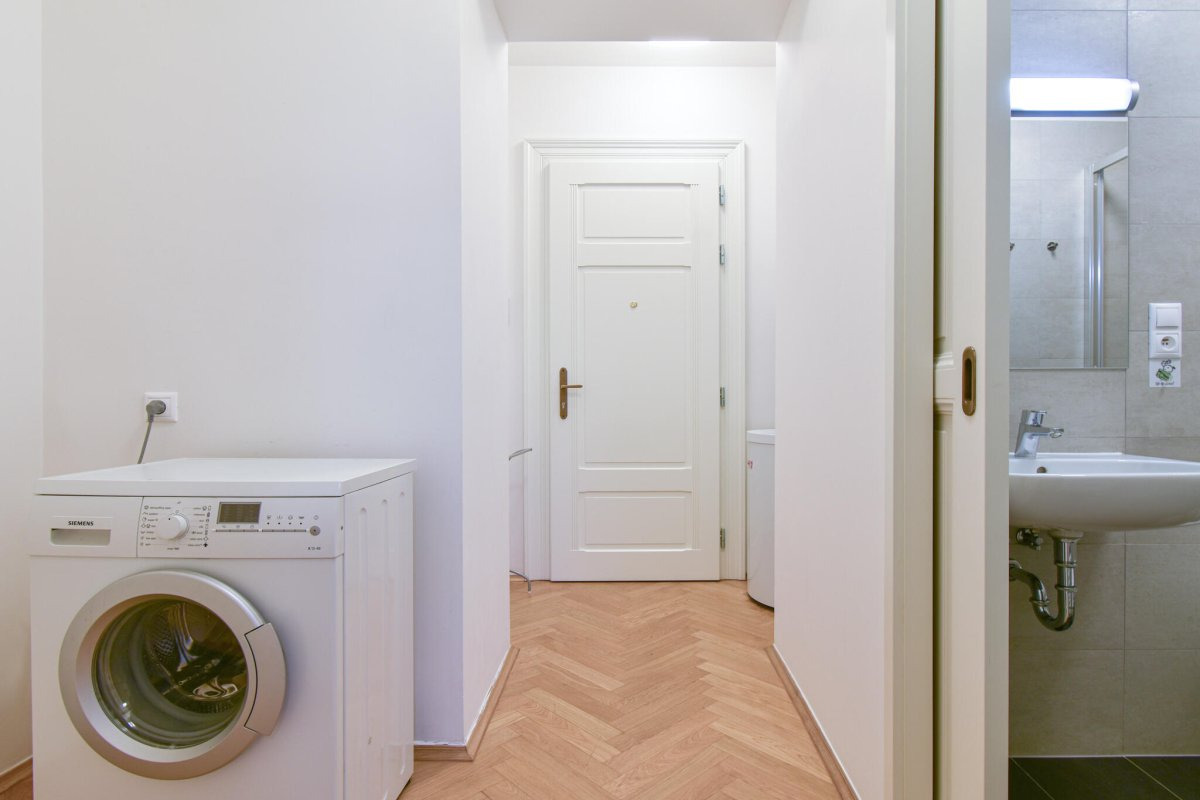 Byt se nabízí částečně vybavený. Kuchyňská linka disponuje mikrovlnnou troubou, sklokeramickou deskou a lednicí. V obývací části prostornou skříň. Součástí koupelny je sprchový kout a pračka.