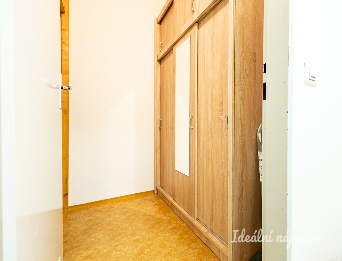 Byt je zařízen postelí, velkou šatní skříní a rozkládací pohovkou.
