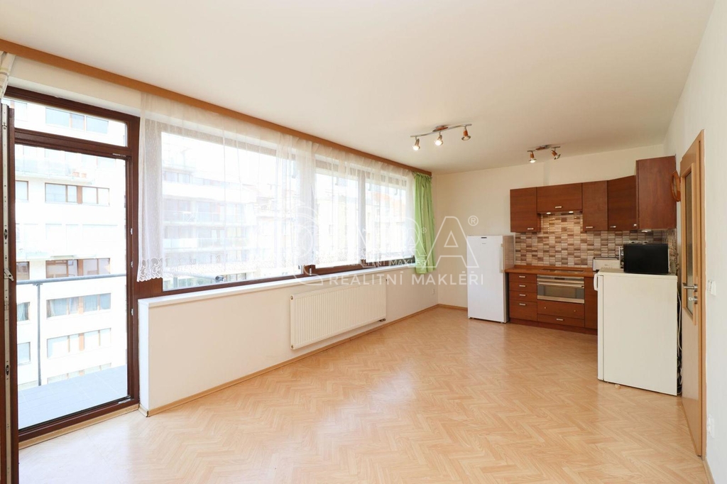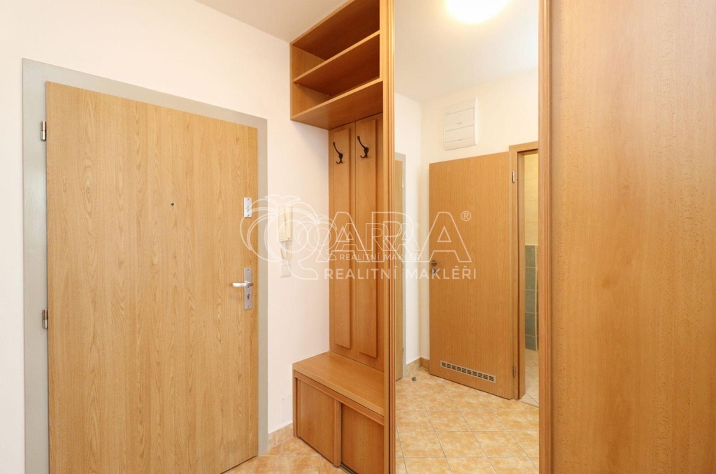 Pronajímá se částečně vybavený, v bytě zůstává kuchyňská linka s indukční varnou deskou, trouba, digestoř, lednice a pračka v koupelně. Ve výklenku možnost umístění postele na spaní. V předsíni naleznete šatní skříň se zrcadlem.