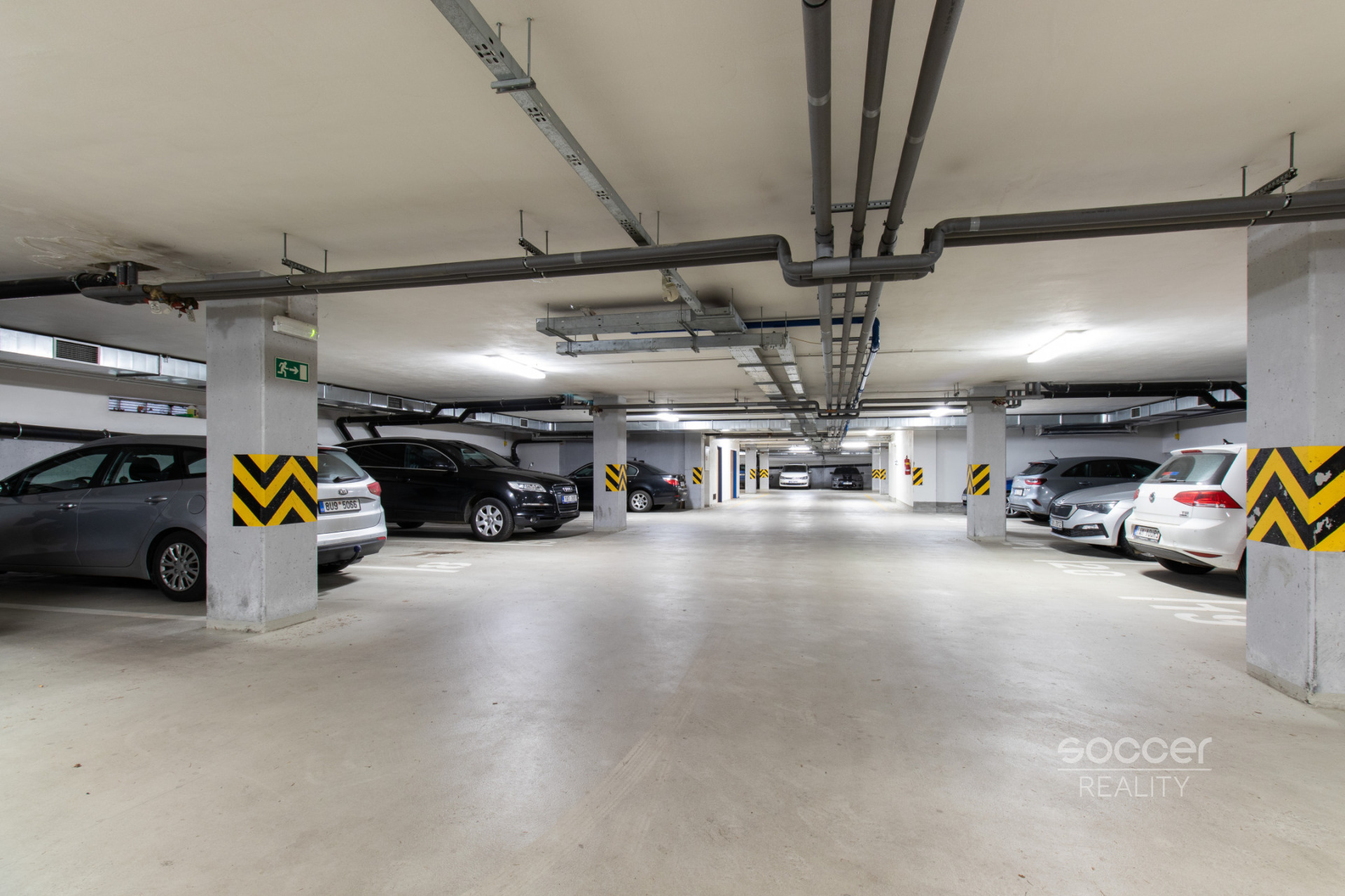 Součástí bytu je také samostatná místnost využívaná jako šatna se skříní, která nabízí dostatek úložného prostoru. Koupelna je vybavena sprchovým koutem a koupelnovým nábytkem, k dispozici je prostor pro pračku. Toaleta je oddělená. K bytu náleží garážové stání v suterénu domu, které zajišťuje pohodlné parkování.