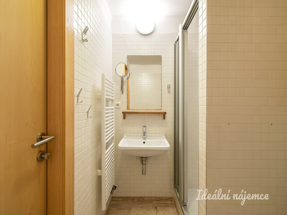 Ateliér se nachází v pátém patře novostavby s výtahem. Je vybaven francouzským oknem s výhledem do udržovaného vnitrobloku. Nabízíme jej částečně vybavený, kuchyň je vybavena nadstandardními spotřebiči AEG - vestavěnou lednicí a myčkou, troubou, sklokeramickou deskou s digestoří a mikrovlnnou troubou. Koupelna je vybavena sprchovým koutem a sanitou značky Duravit.
