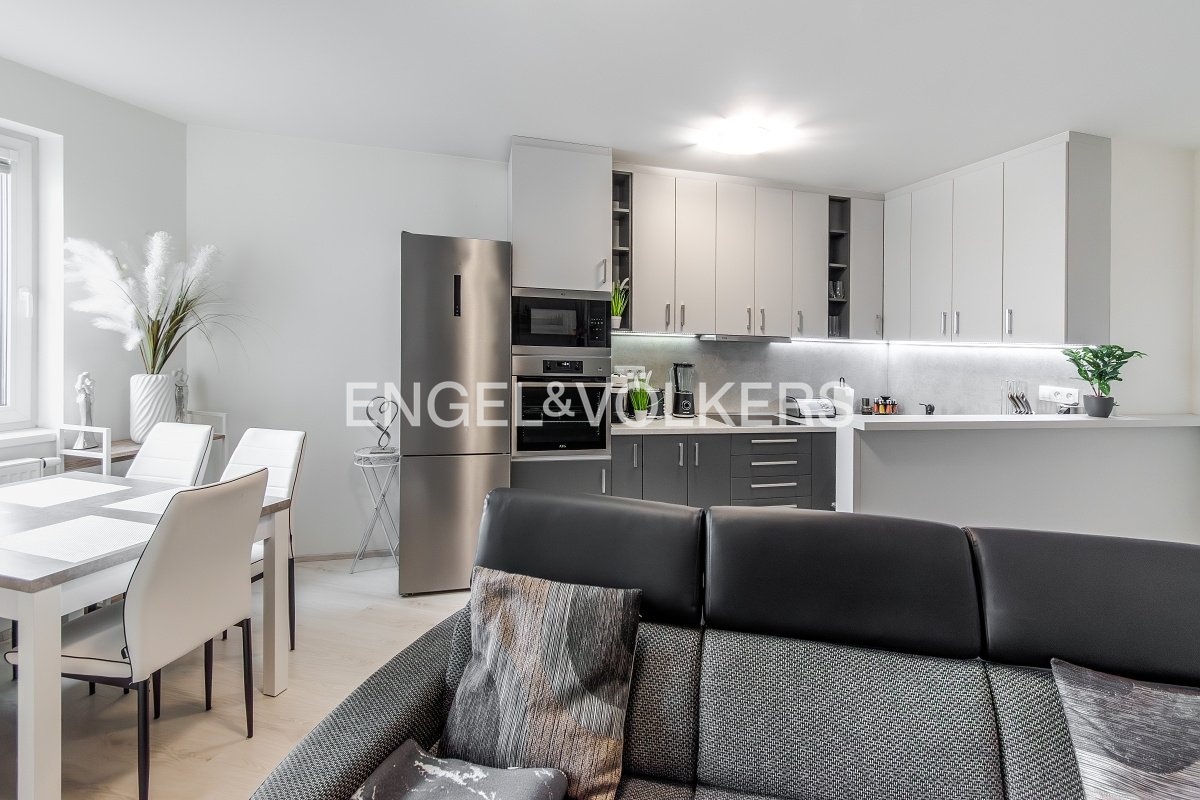 Moderní kompletně vybavený byt 1+kk s lodžií, sklepní kójí a garážovým stáním v rezidenci Veselská, Praha 9 – Letňany.