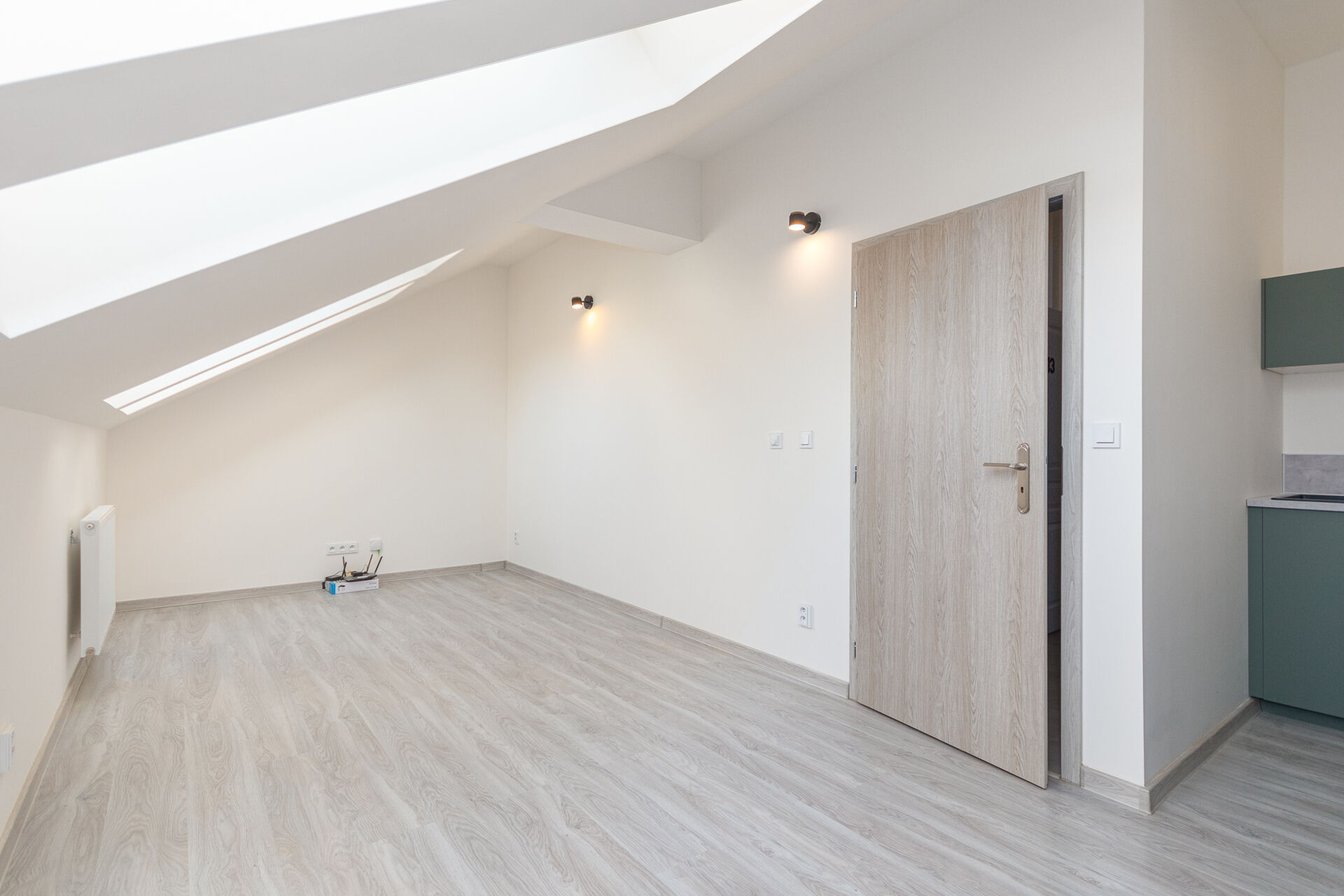 Nabízíme k pronájmu útulný byt 1+kk o velikosti 30 m² s praktickým druhým patrem o výměře 5 m², které je ideální jako prostor na spaní nebo pro úložné účely. Byt se nachází v 5. nadzemním podlaží, v posledním patře budovy na Košické ulici.