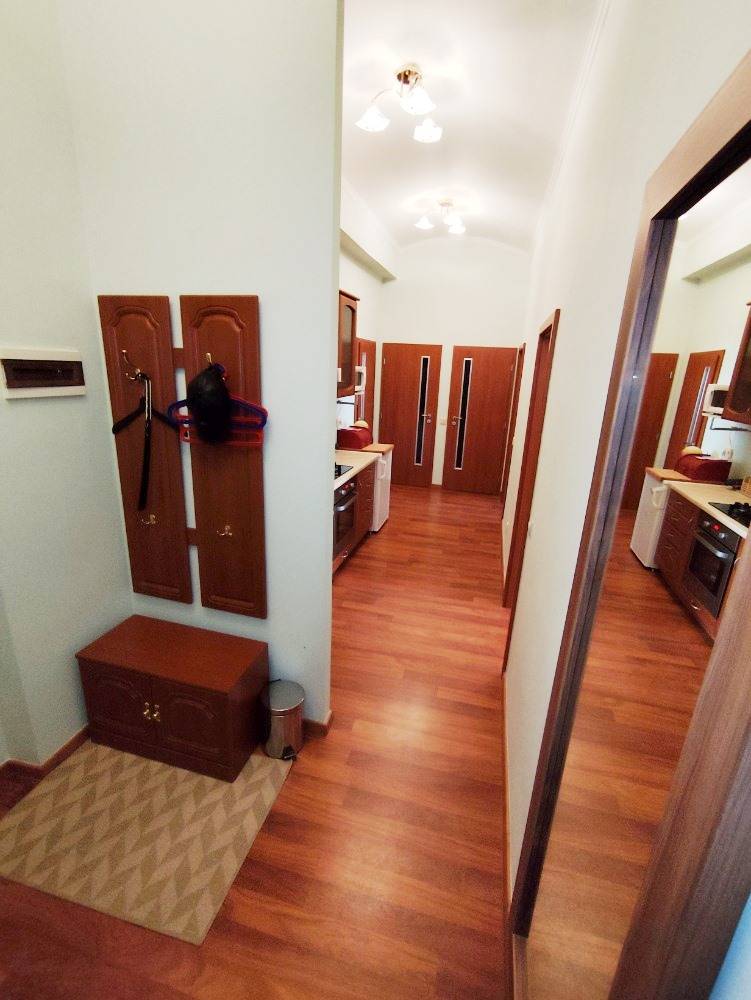Byt disponuje užitnou plochou 63 m² a je kompletně vybaven, což Vám umožní okamžité nastěhování a pohodlné bydlení bez nutnosti zařizovat nábytek. Byt má kvalitní vchodové bezpečnostní dveře. Neprůchozí pokoje. Ze vstupní chodby dostanete do všech 2 pokojů. Kuchyňská linka se nachází v prostorné chodbě a je vybavená lednicí, troubou, varnou deskou a digestoří. Koupelna s vanou a WC. Samostatné WC. V komoře je pračka.