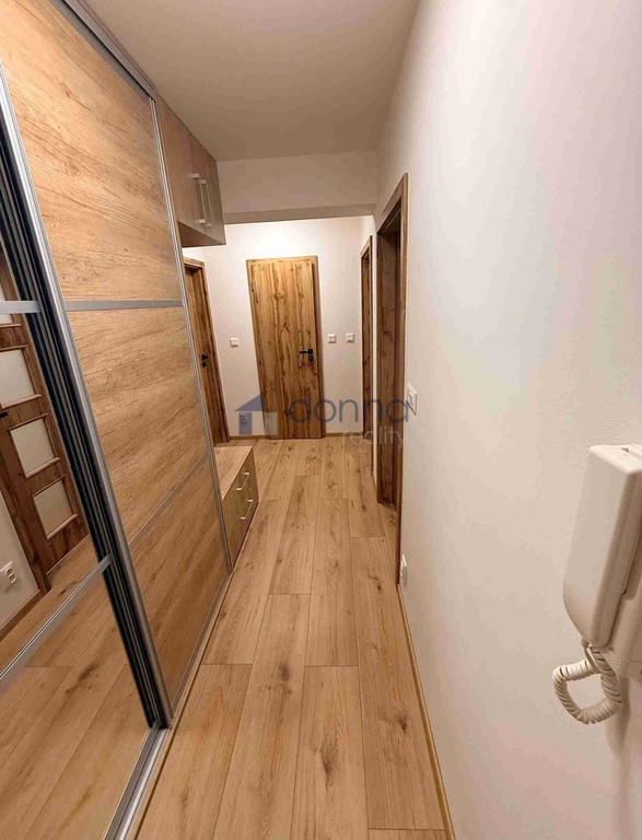 2 ložnice plně vybavené nábytkem (lůžko 180x200 s matrací, šatní skříň, komoda, psací stůl). Dále chodba s velkou skříní, plně vybavená kuchyň s jídelním prostorem, kde se nachází jídelní stůl a židle, koupelna se sprchovým koutem, umyvadlem se skřínkou a zrcadlem, pračka, topný žebřík, samostatné WC s umyvadlem s zrcadlem, komora nebo šatna.