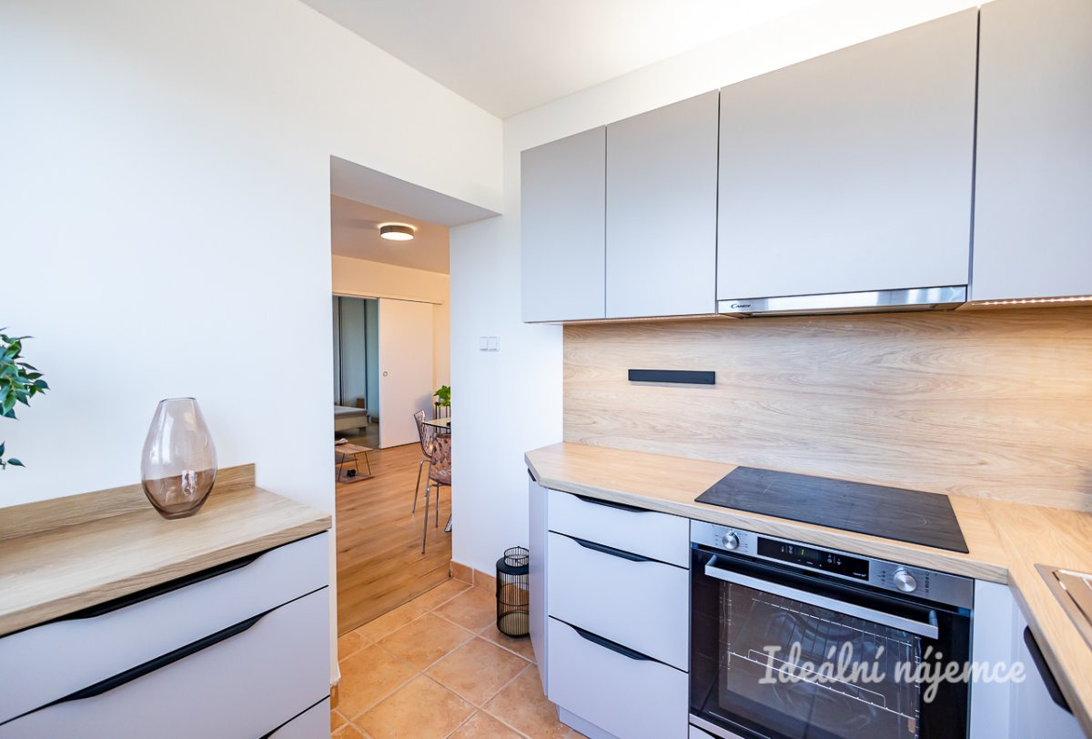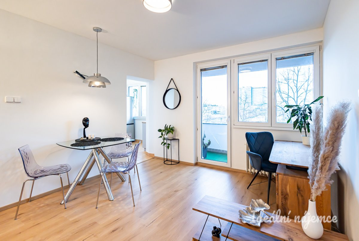 K dlouhodobému podnájmu nabízíme moderně zrekonstruovaný, ve vysokém standardu plně zařízený byt 2+1 s velkou lodžií orientovanou do vnitrobloku ve 3. patře udržovaného cihlového domu.