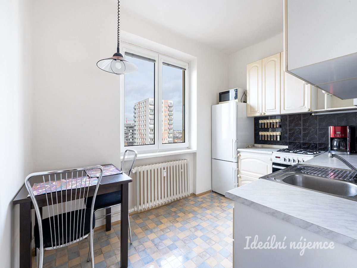 K dlouhodobému podnájmu nabízíme kompletně zařízený byt o dispozici 2+1, který se nachází v pátém patře cihlového domu s výtahem v blízkosti metra Budějovická. Byt o celkové výměře 53 m2 má neprůchozí ložnice, v ceně je sklepní kóje.