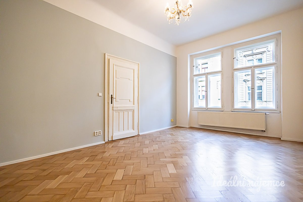 Dům se nachází v historické části Prahy, kde vysoké stropy a dřevěné podlahy jsou samozřejmostí. Byt má dva velmi prostorné průchozí pokoje a separátní kuchyňskou linku, kde krom jiných spotřebičů nechybí ani myčka. Koupelna je vybavena sprchovým koutem a úložným prostorem. Komfort pak nabízí oddělená toaleta.