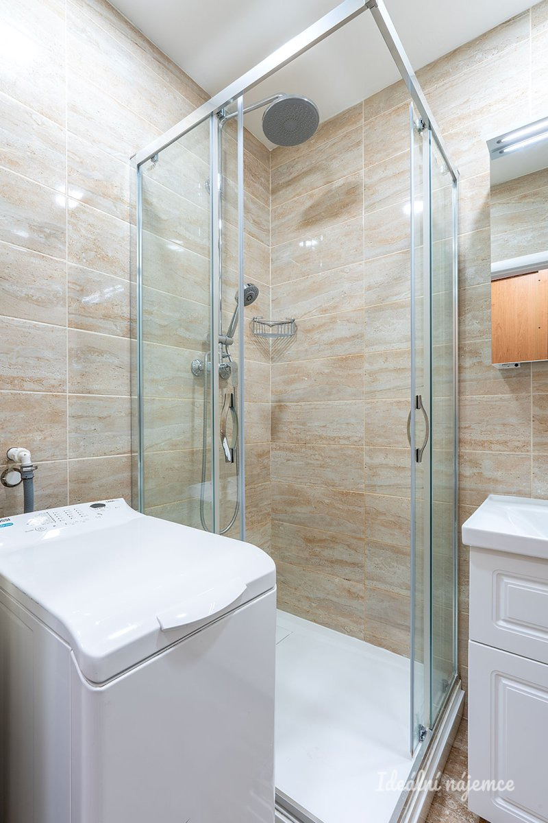 Interiér je nabízen jako částečně vybavený, což budoucím podnájemníkům poskytuje skvělou příležitost zařídit si domov podle vlastního vkusu. Kuchyně disponuje praktickým úložným prostorem a je osazena elektrickou troubou, sporákem a digestoří. Dominantou bytu je rozměrný obývací pokoj plný přirozeného světla, do kterého se pohodlně vejde relaxační zóna i jídelní kout. Druhý, samostatný pokoj nabízí naprosté soukromí a je ideální k využití jako ložnice nebo klidná pracovna. Moderně řešená koupelna je vybavena sprchovým koutem, umyvadlem a pračkou, přičemž toaleta je pro větší komfort umístěna samostatně.