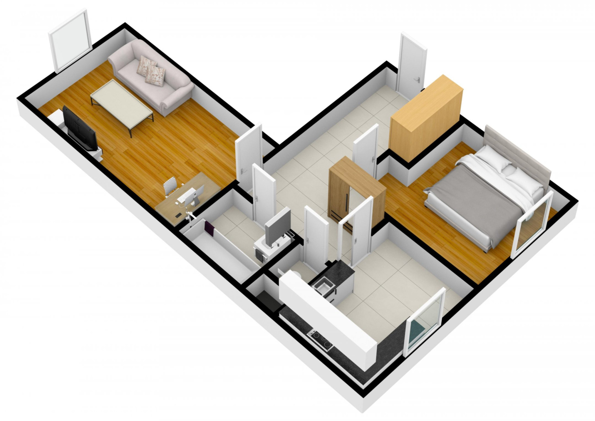 Byt tvoří dvě světlé neprůchozí místnosti, samostatná plně vybavená kuchyně kam se vejde pohodlně stůl se židlemi, koupelna s vanou, pračkou a plynovým kotlem na vytápění bytu.