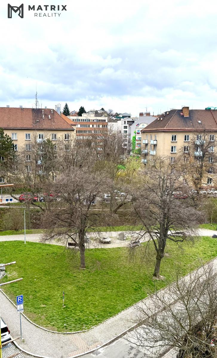 V blízkosti domu je dostatek zeleně - park, dětské hřiště, cyklostezka, metro Palmovka.