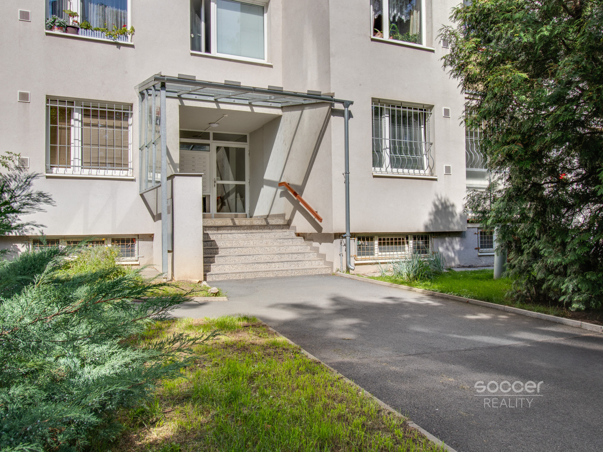 Dům je velmi tichý, bezpečný a vstup je možný pouze na čip. Parkování je k dispozici přímo před domem, případně lze využít střežené parkoviště v blízkosti.